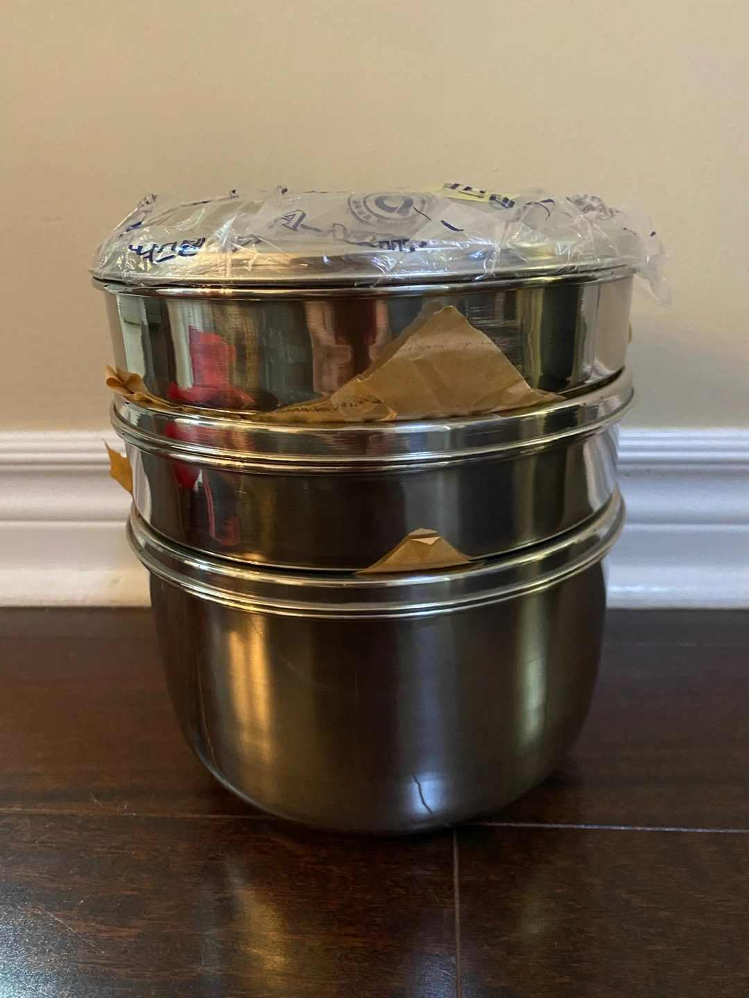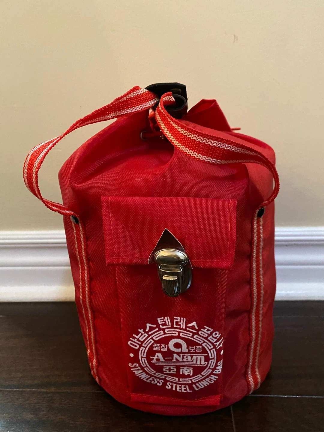 Selling a stainless steel lunch box by A-Nam! It comes with a convenient red carrying bag. Perfect for taking lunch to work or school. The lunch box appears to be in great condition and ready for a new home