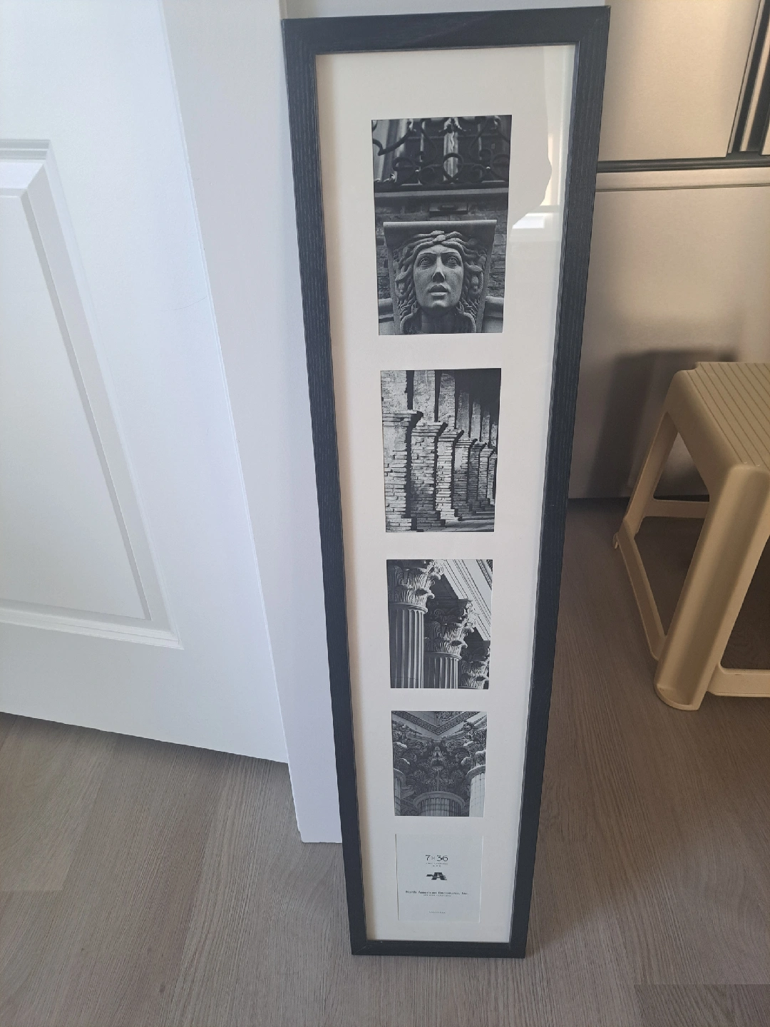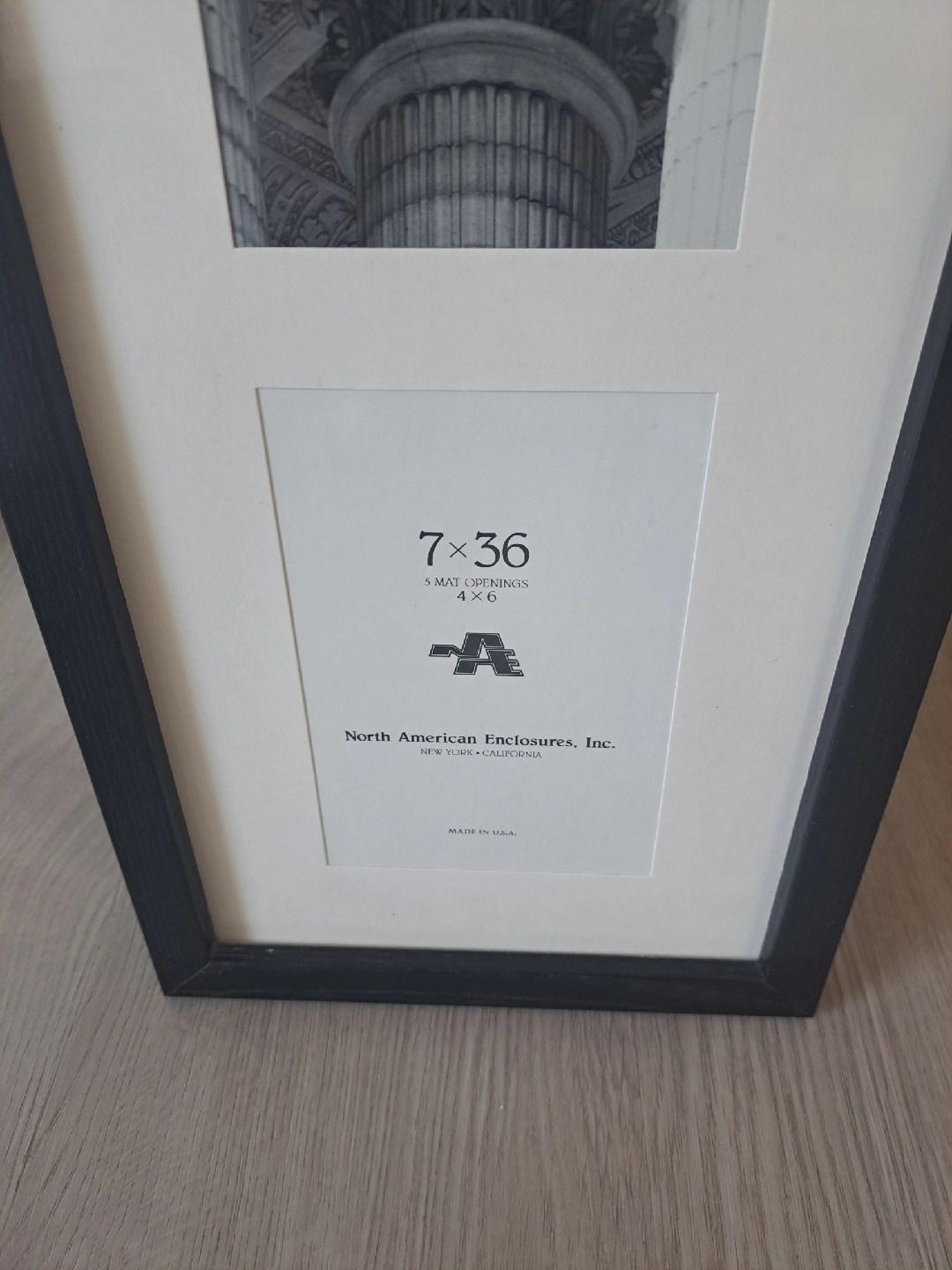 Selling a picture frame by North American Enclosures, Inc. It holds five 4x6 photos, and the overall frame size is 7x36. Perfect for displaying a series of memories or artwork!