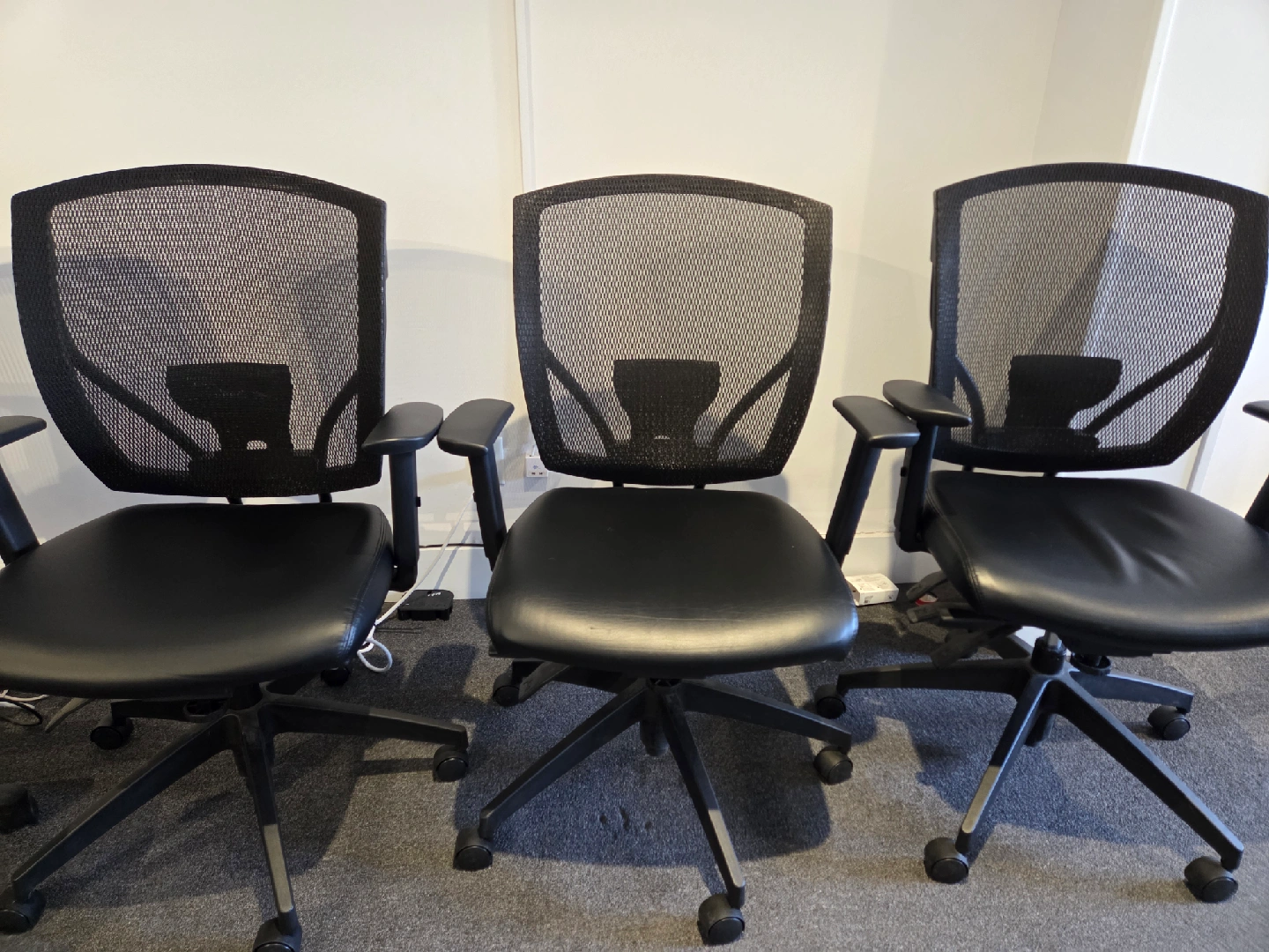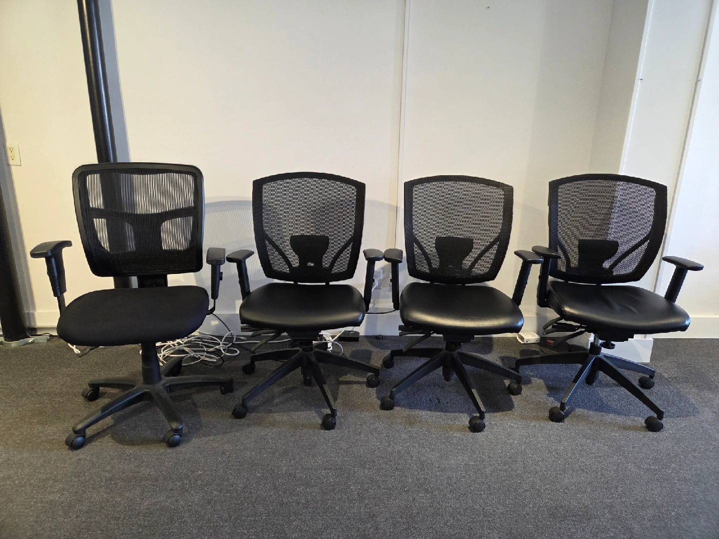 OFFICE MOVE! We moved to a new place and these are still at the old one. 4 available. 3 with pleather seats, one with fabric seat.