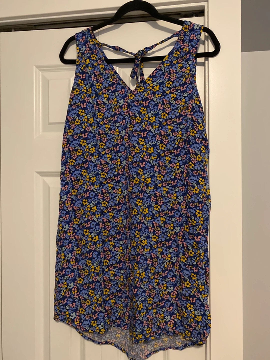 Selling a Gap floral sleeveless dress in size medium! It's in great condition and features a cute floral pattern. Perfect for summer days or layering in the cooler months. The dress has a tie at the back of the neck.