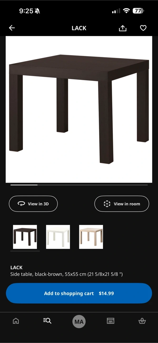 Buy & SellIKEA Lack Side Table, Black-Brown, 55x55 cmIKEA Lack Side Table, Black-Brown, 55x55 cm$5Selling an IKEA Lack side table in black-brown. It's 55x55 cm (21 5/8x21 5/8 "). It has some minor signs of use, but is still in good conditionWHERE TO MEETCheck LocationView MapSELLERverifiedMichaelaRockcliffe943 reviews0 chats·0 favorites·32 views