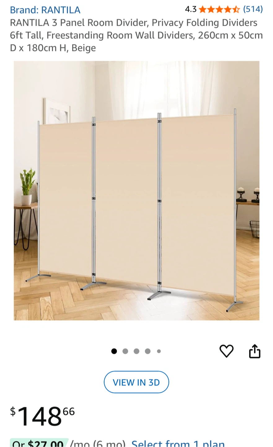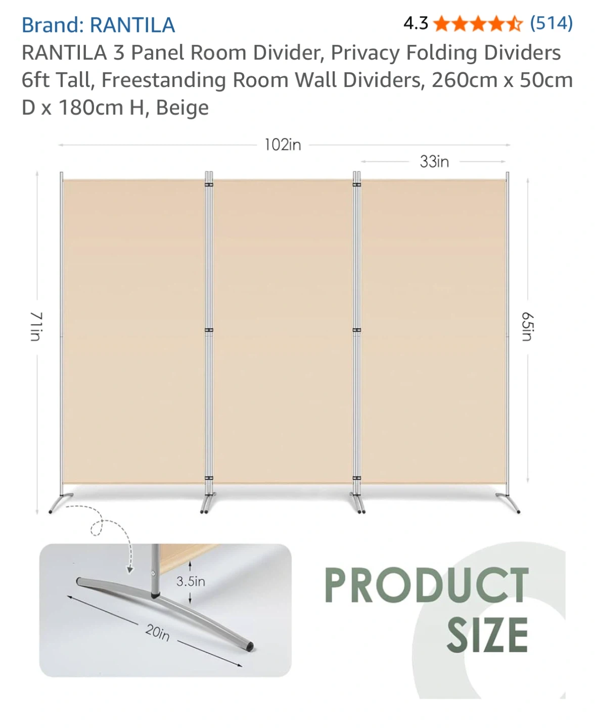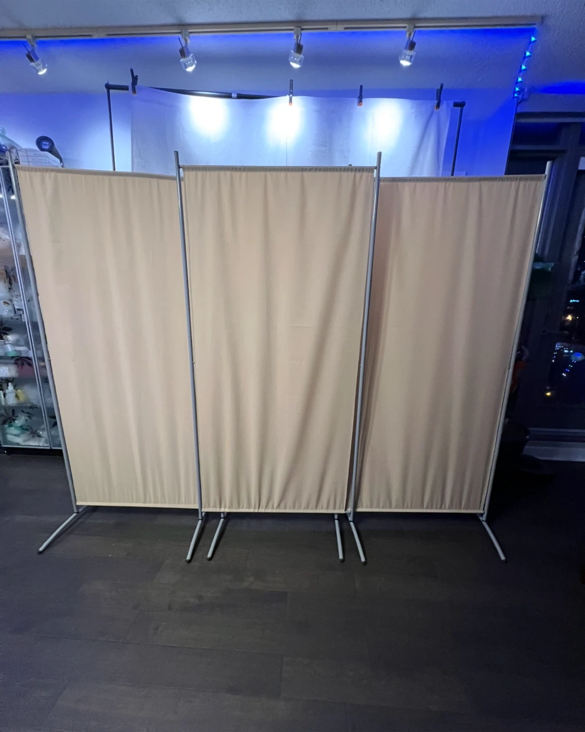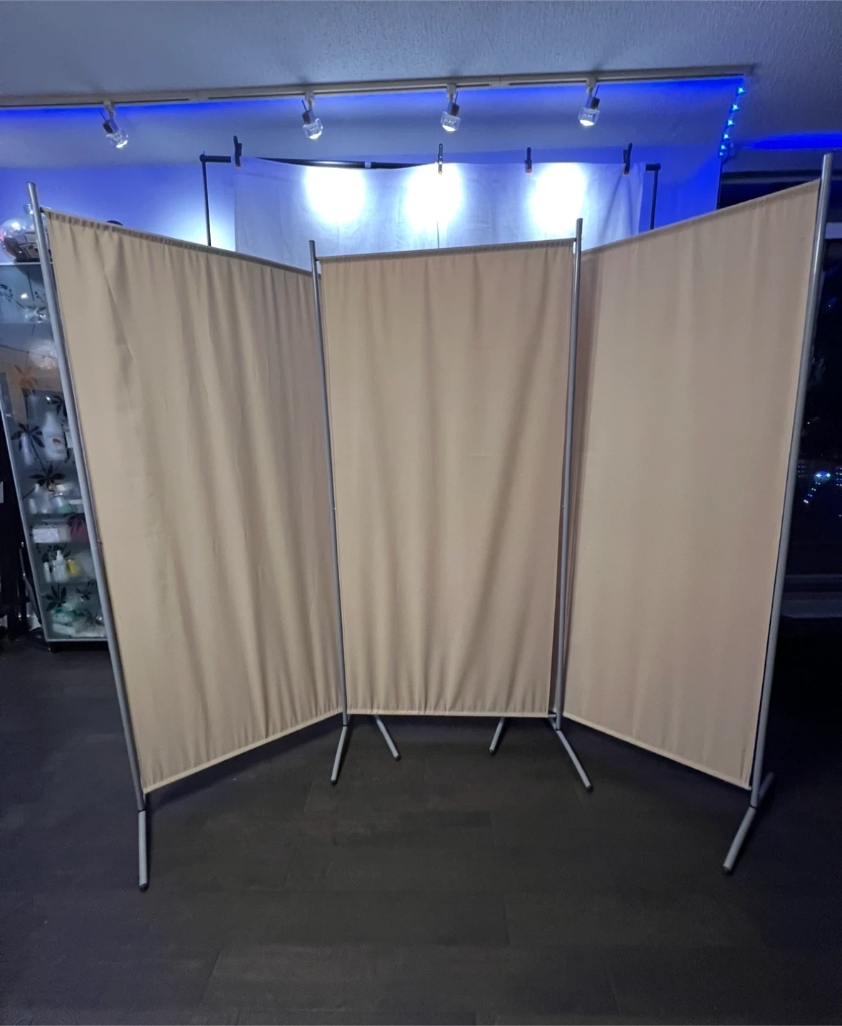 This RANTILA 3-panel room divider is perfect for creating privacy or dividing a space, featuring a beige colour, standing 6ft tall, and is in good condition, sized at 260cm x 50cm D x 180cm H. It's a great solution for adding temporary walls to any room. The condition is NEW and offers plenty of functionality and style. Additional Specifications: * Brand: RANTILA * Type: 3 Panel Room Divider * Colour: Beige * Height: 6ft (180cm) * Dimensions: 260cm x 50cm D x 180cm H Based on similar items on Kijiji, I'm pricing this room divider at $90. It's a stylish and practical addition to any home or office. The poles included with this unit is a dark grey and is missing one leg. Never been used don’t need. The panels can be supported with simple elastic band, tape or clamp. If item is still here, it’s still available. First come first served or whoever pays first. I accept etransfers as well and live near CN Tower. Delivery extra depending on location. Check out other items seller has. Always adding new items!! Keep checking back!!!
