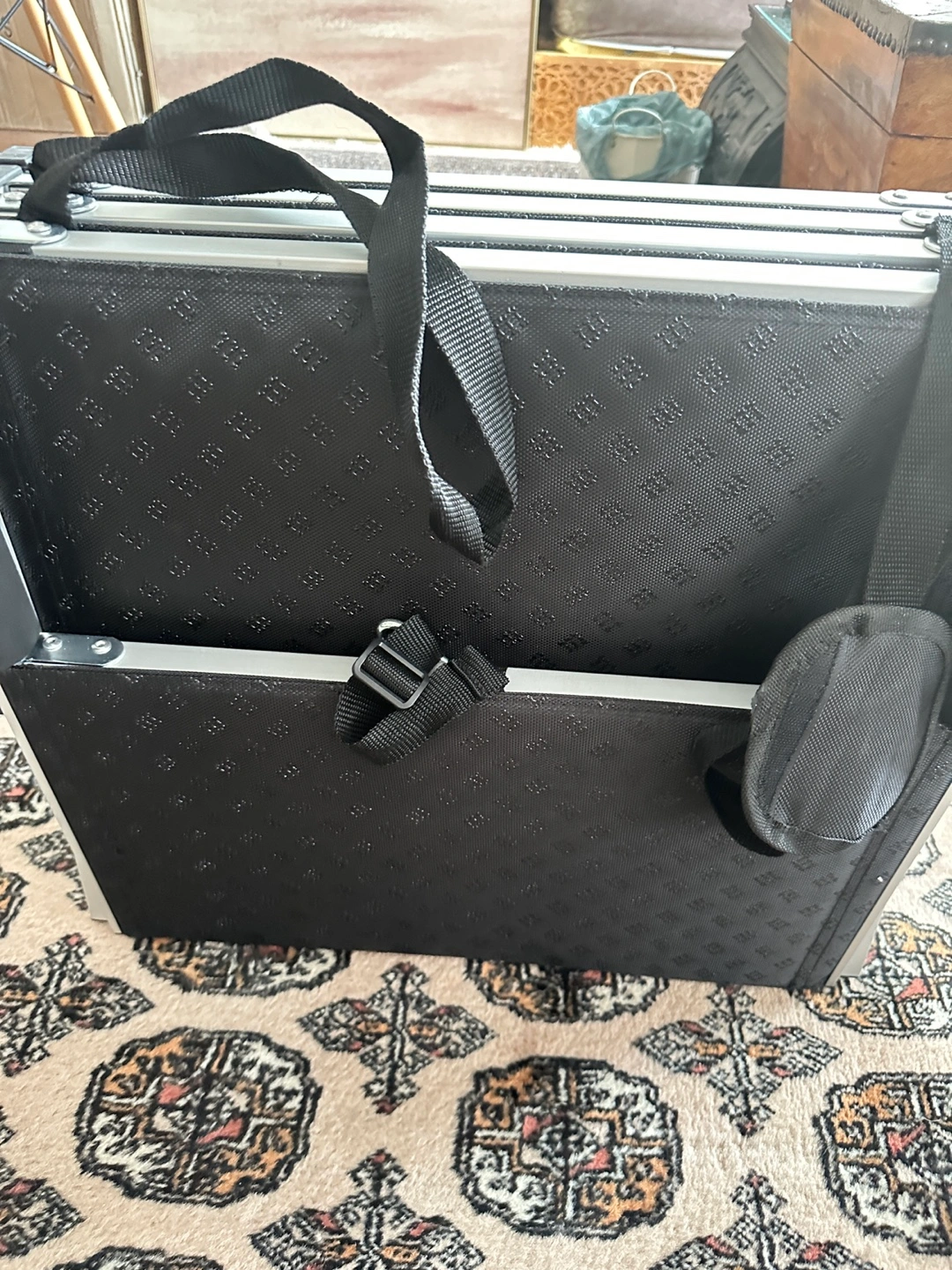 Four-step pet stairs. Collapsible design for easy storage. Features a carrying strap and non-slip rubber coating. Aluminium frame. Durable and lightweight.