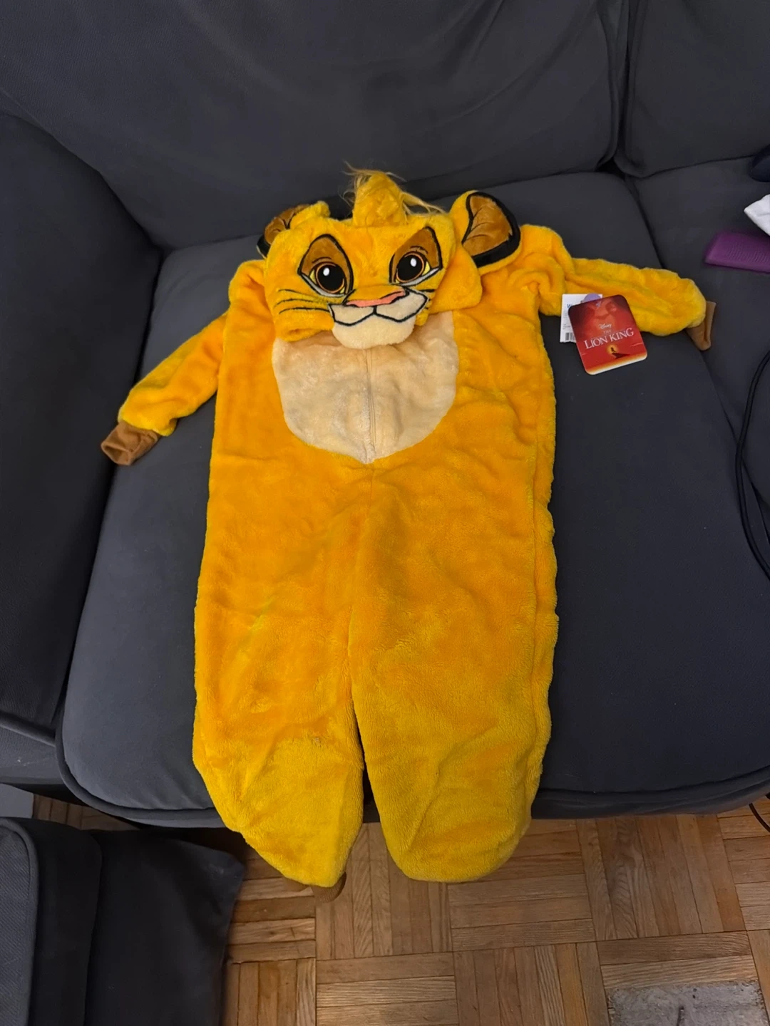 Soft fleece onesie designed to look like Simba from Disney's The Lion King. Features a hood with Simba's face and ears. It's super comfy for playtime or costume events! Brand new size 2t