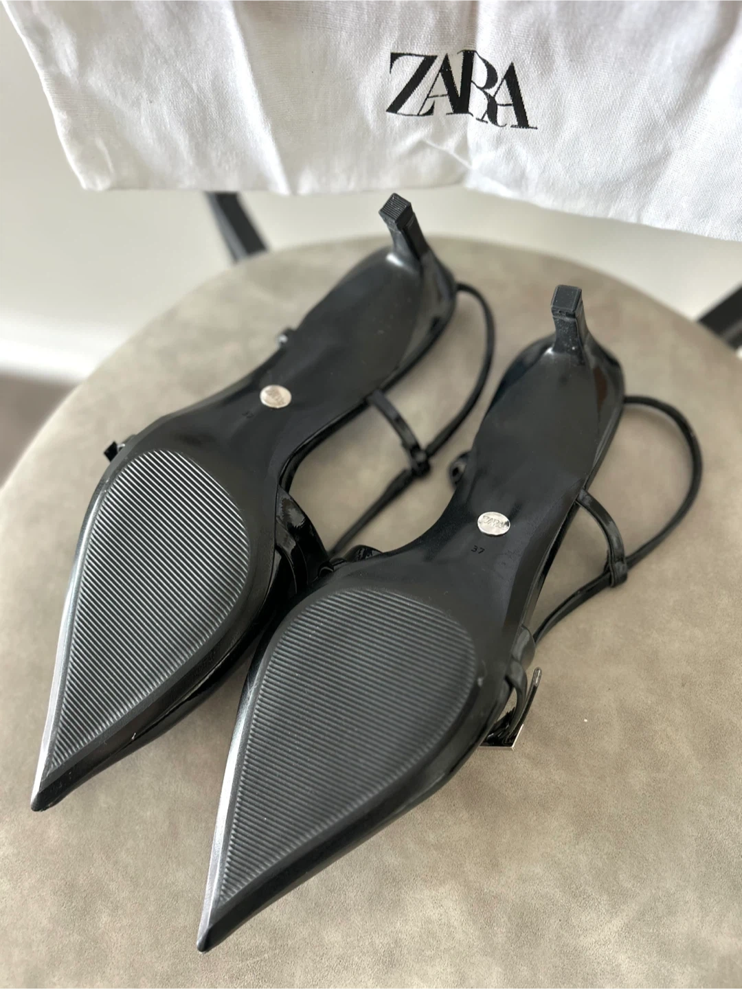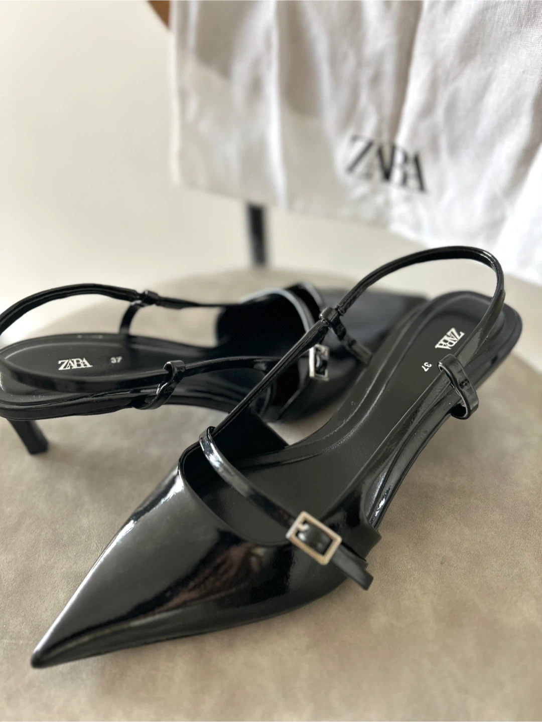 Selling a pair of Zara black heeled slingbacks in size EU 37/US 6.5.