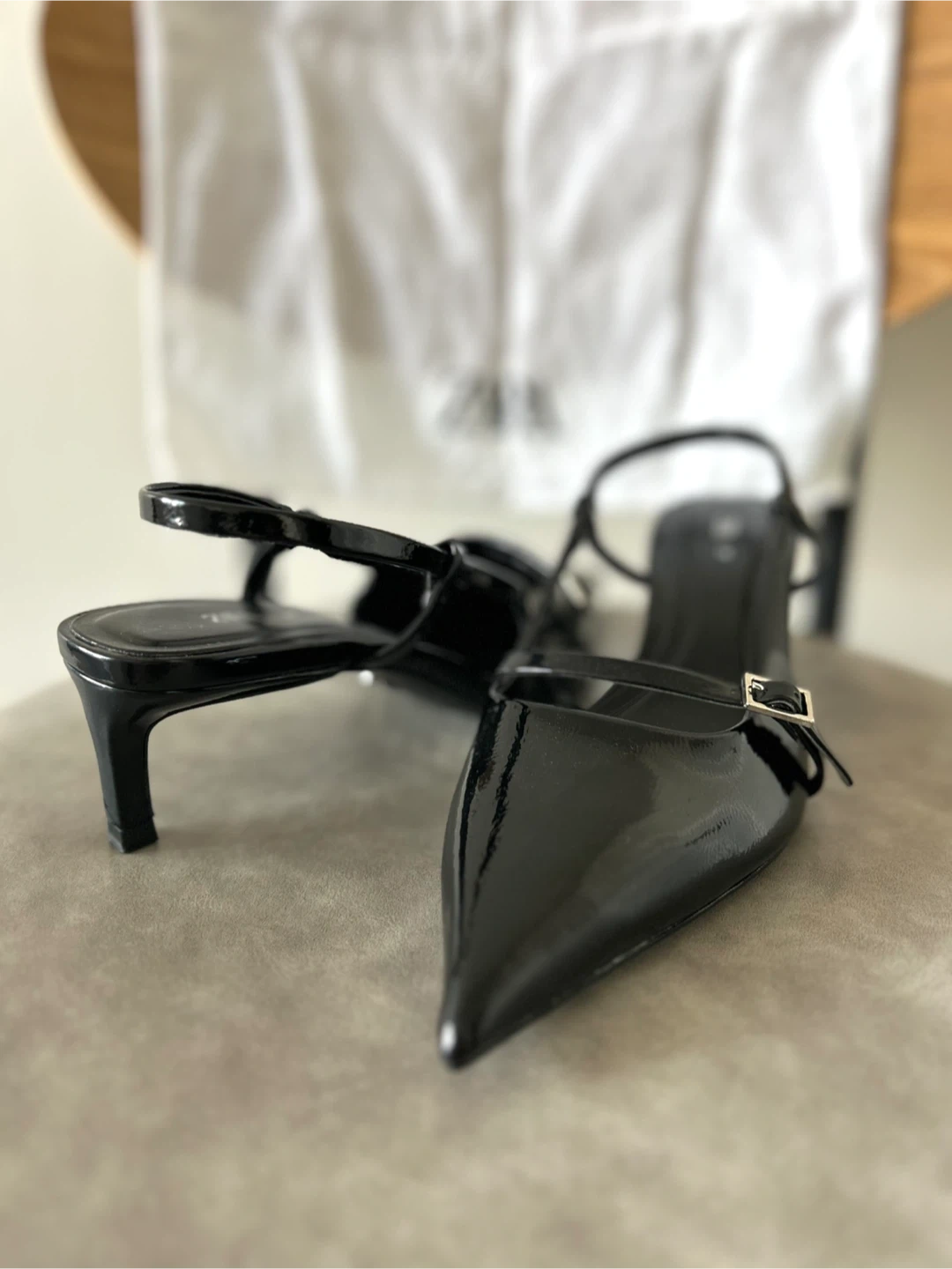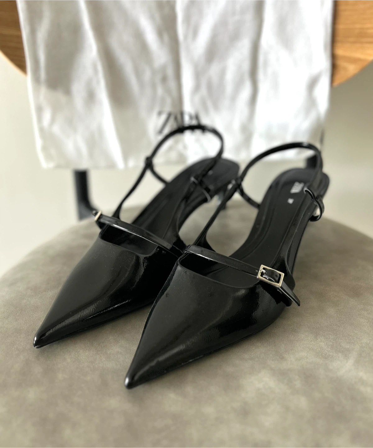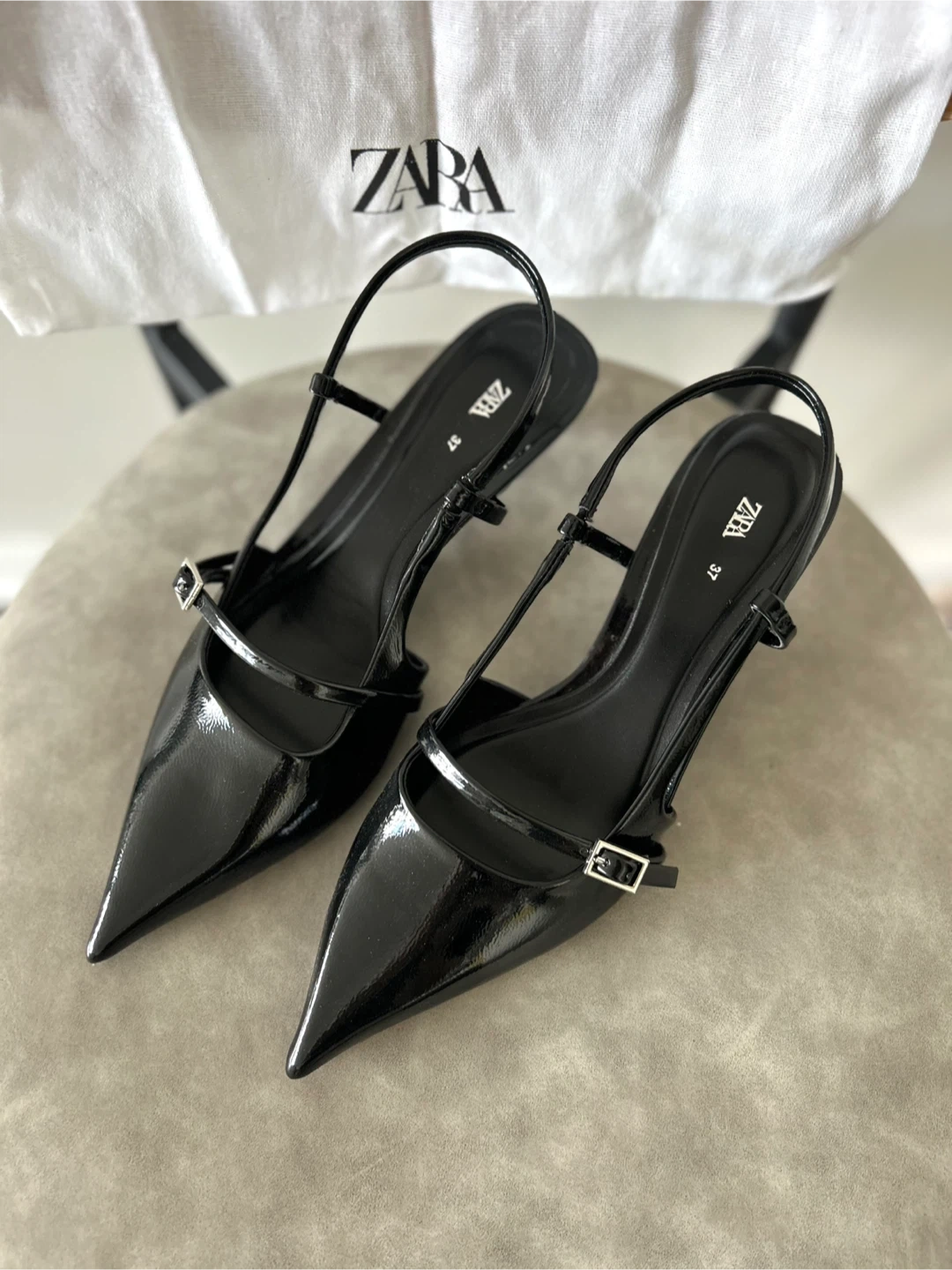 Selling a pair of Zara black heeled slingbacks in size EU 37/US 6.5.