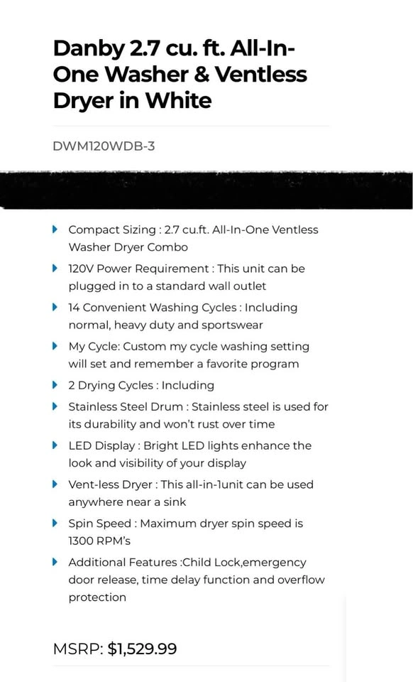 Private sale. Not a store. Brand New. Never used. MSRP 1529.99 + tax. Great for basement or condo/apartment where you don’t have 220v wiring available like standard dryers.