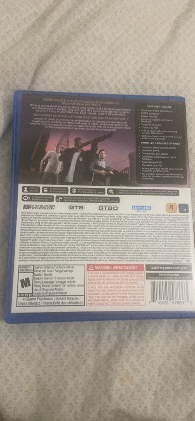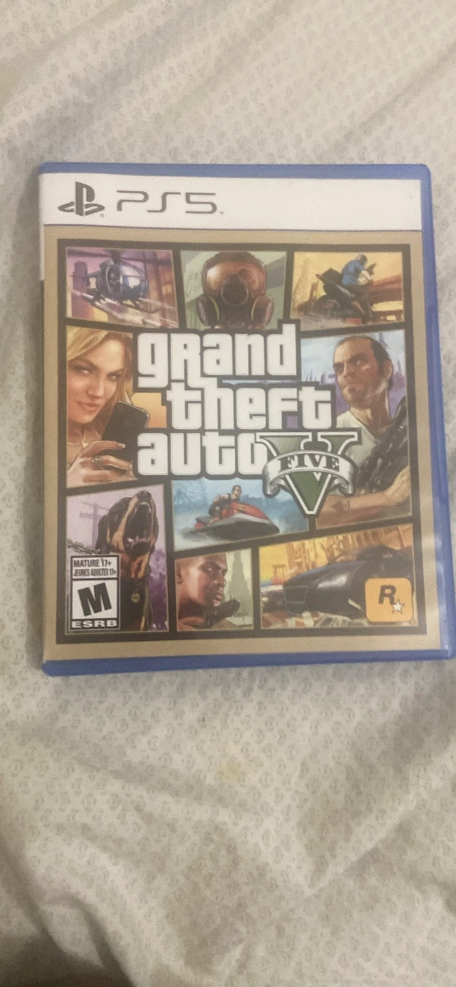 Selling Grand Theft Auto V (GTA 5) for the PlayStation 5 (PS5). Experience the action-packed blockbuster with stunning visuals and immersive gameplay! Features include enhanced graphics, faster loading times, and 3D audio. Enjoy a vast open world and a gripping storyline.