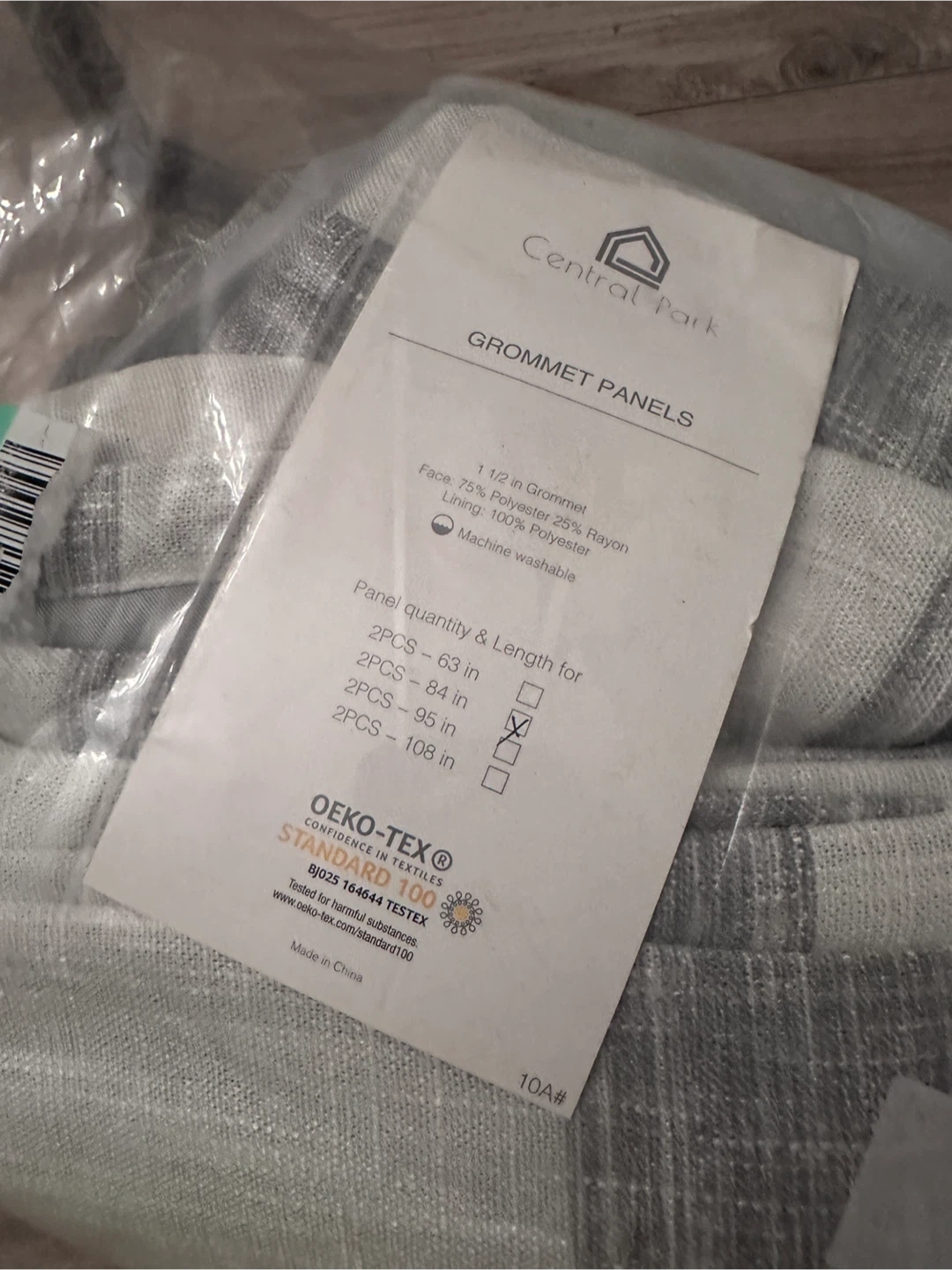 224Selling a set of Central Park grommet panels still in the original packaging! These panels are 1 1/2 in grommet style and include two panels that are 63 inches in length. The face of the panel is 75% polyester and 25% rayon, with a 100% polyester lining. They are also machine washable for easy care!