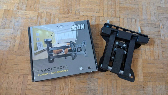 Elevate your viewing experience with the iCAN TVACLT0021 Plasma/LCD Bracket, designed to securely mount your TV while offering flexibility in positioning. This sturdy, articulating bracket is perfect for optimizing your screen's angle and saving space. Please note that this item is used and shows signs of wear but remains fully functional. Get ready to enjoy your favourite shows from the perfect vantage point! Max weight capacity 25kg/55lbs If the ad is up, the bracket is available. Grab it now and give your TV the support it deserves!