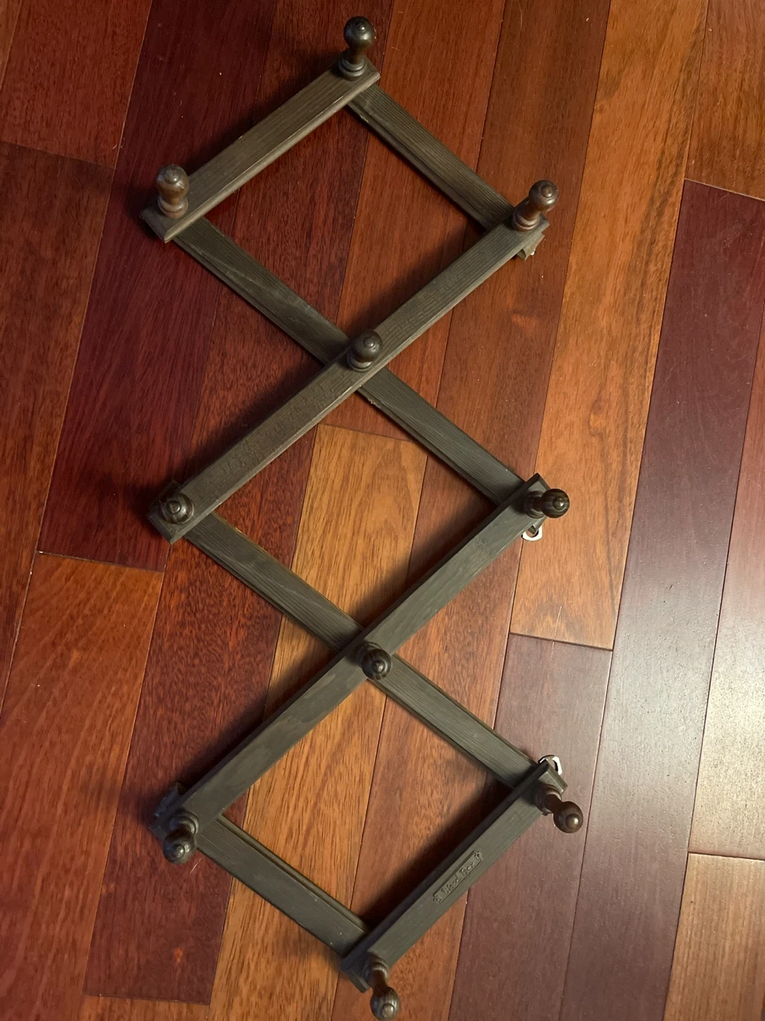 Selling a wooden accordion-style coat rack. It's a unique and functional piece for any home. Perfect for adding some vintage charm to your entryway or closet!