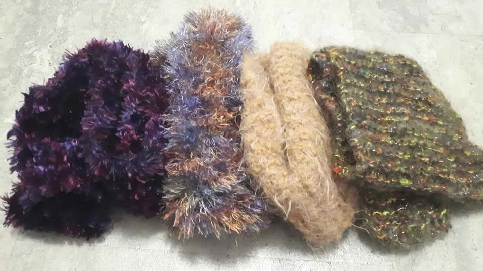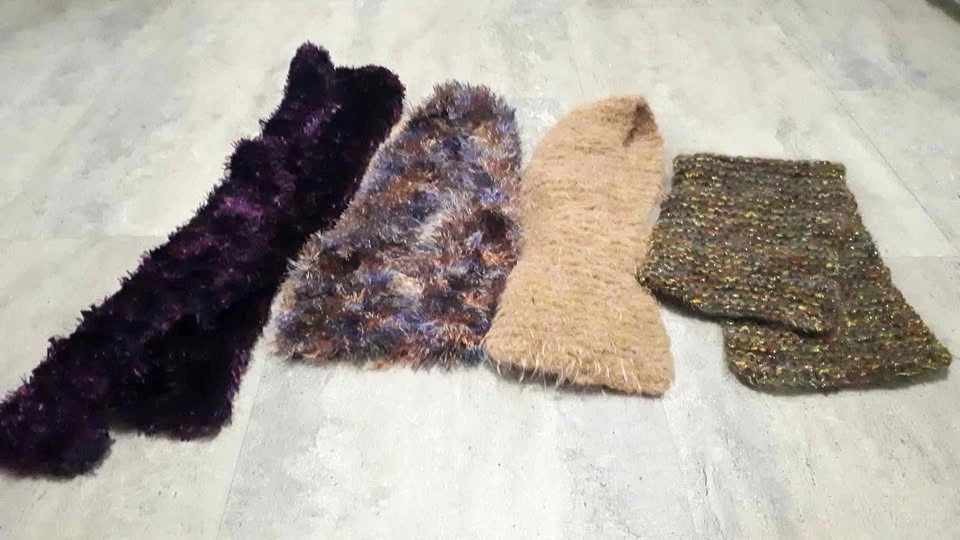 Knit scarves and smaller ones to tuck under your winter coat. Soft fluffy yarn Located in the hunt club park area near Conroy and Johnston