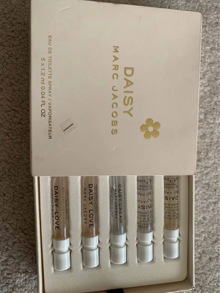 5 different Daisy perfume samples.