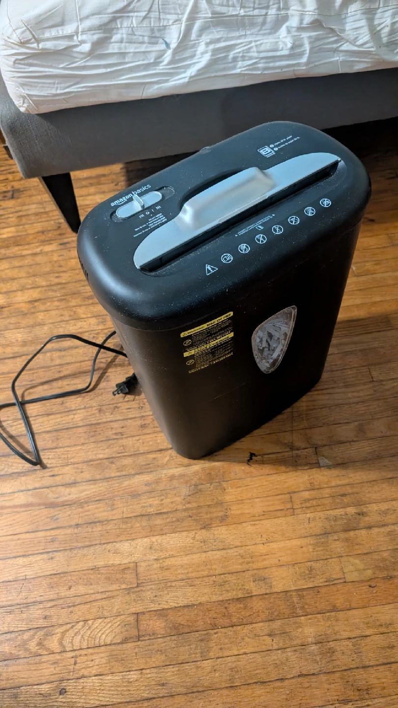 Buy & SellAmazon Basics paper shredderAmazon Basics paper shredderFreesmall Amazon basics paper shredder with credit card shredding capabilities. 13" wide 7" deep 15.5" tall Very good condition WHERE TO MEET11th and AlderView MapSELLERverifiedTavinKitsilano1336 reviews1 chats·0 favorites·33 views