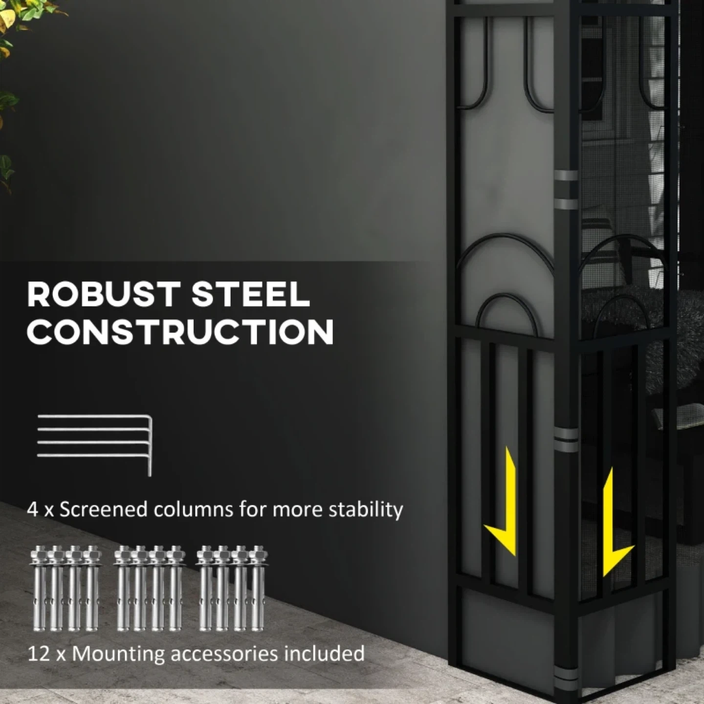 • PA-coated polyester pergola canopy protects against UV