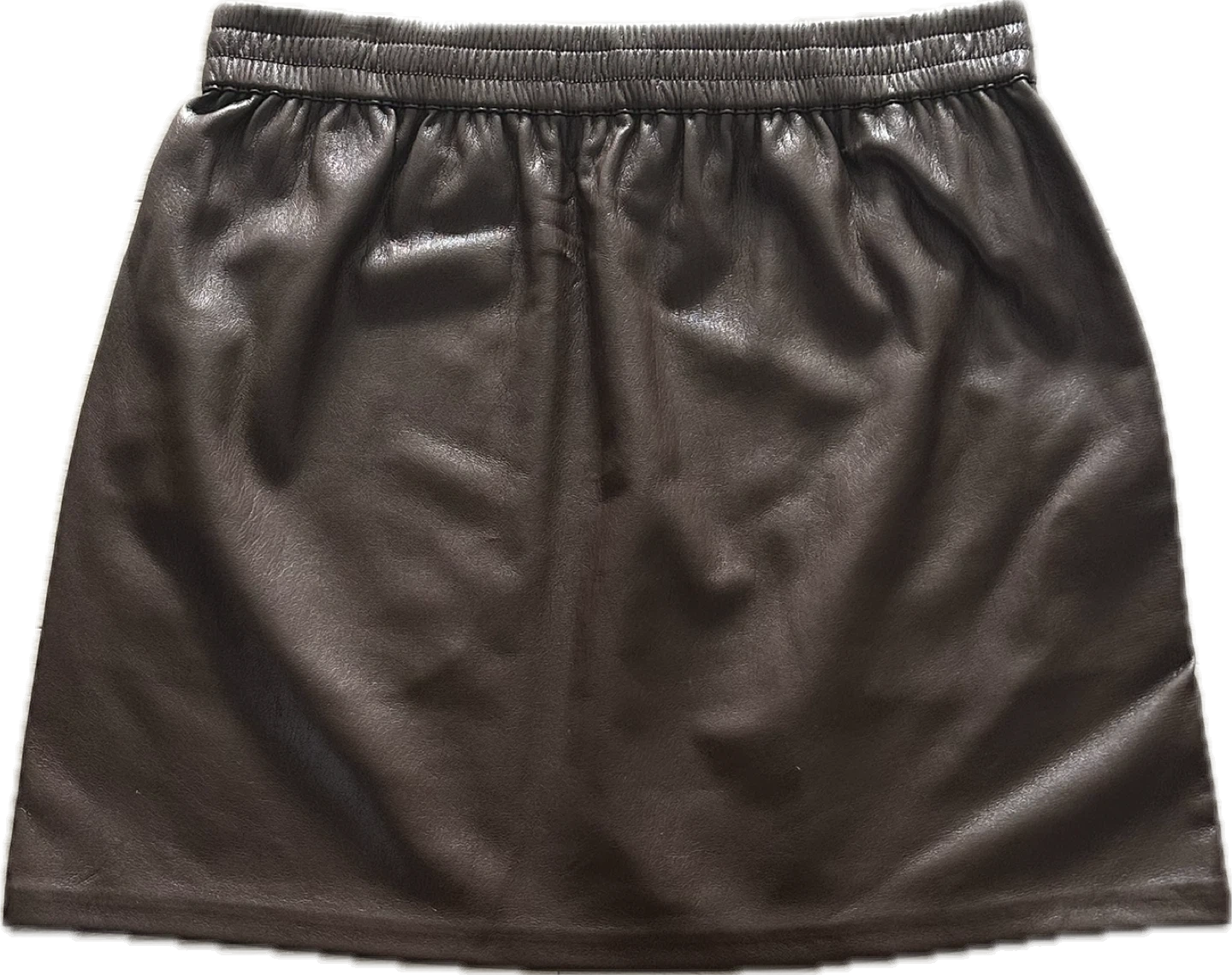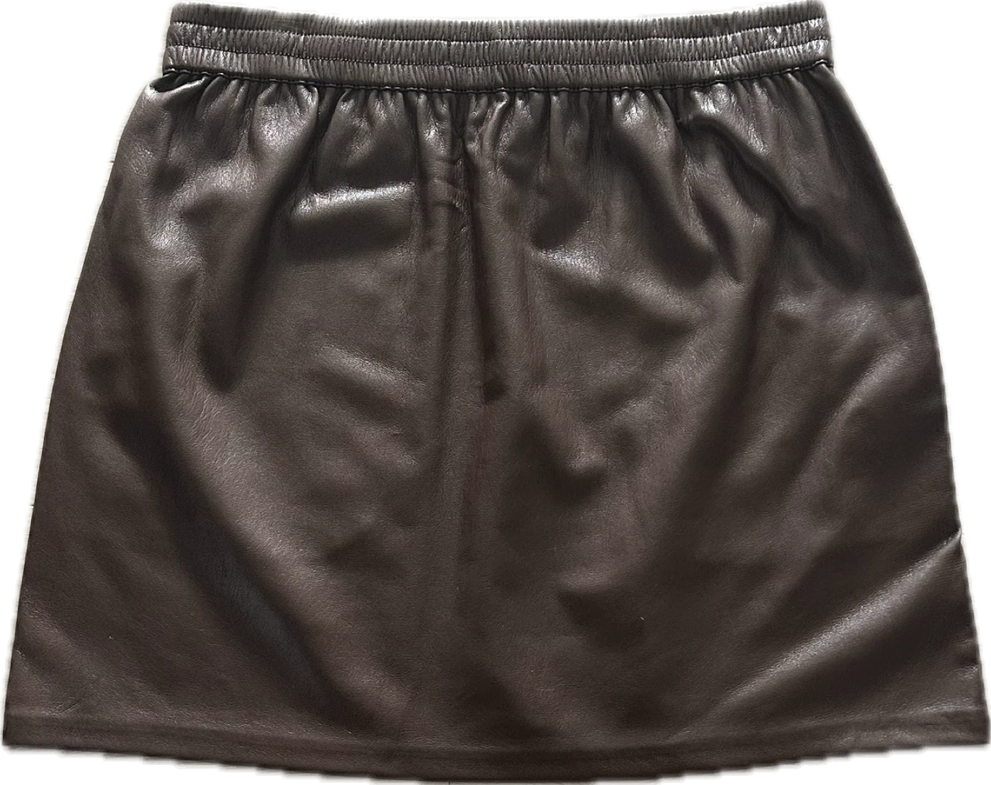 This is a mid-rise pencil skirt with an elastic waist and inseam pockets. It’s made with our innovative Vegan Leather that looks and feels like the real thing.