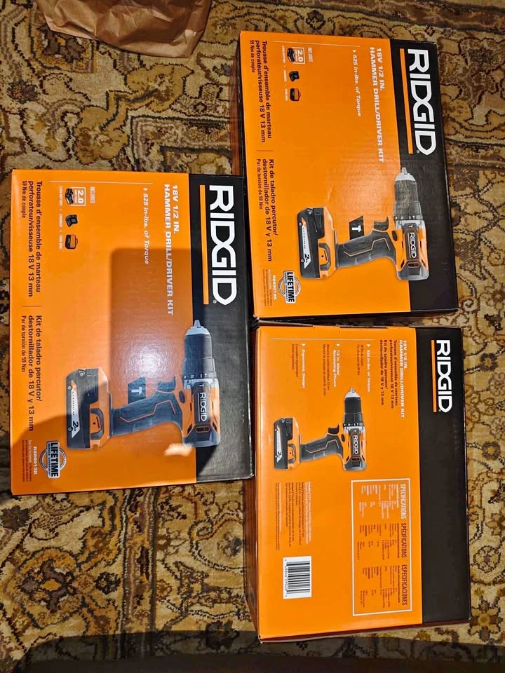 Brand new RIDGID 18V Cordless 1/2 in. Hammer Drill Kit with 2.0 Ah Battery and 18V Charger. With registration, this is backed by the Industry's Only Lifetime Service Agreement. It includes a 2.0 Ah Battery, an 18V Charger, and an operator's manual.