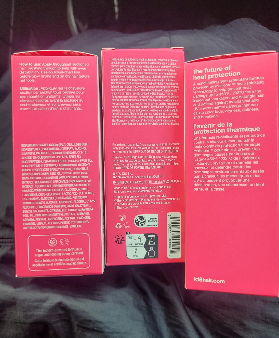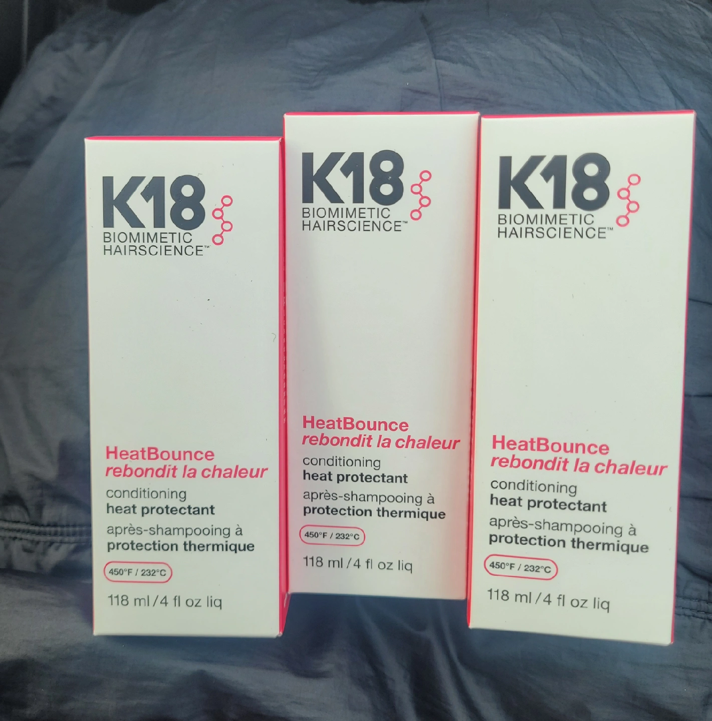 Selling a bottle of K18 HeatBounce leave-in conditioner heat protectant. This product protects from heat up to 450 degrees Fahrenheit and reduces breakage after blow-drying. It also detangles even damaged hair. It's a lightweight formula that softens and intensely protects hair. The size is 4oz/118ml. $25 each