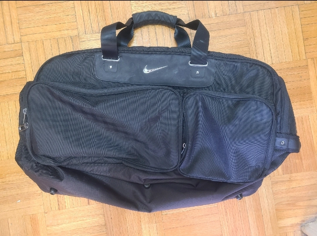 Looking to giveaaay a black Nike duffel bag! It's in great shape and perfect for the gym or weekend trips. The bag features durable construction and a spacious interior, ready for all your essentials