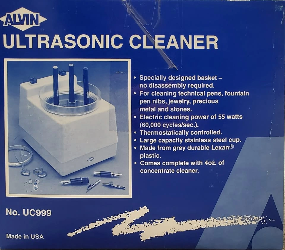 Ultrasonic cleaner for technical pen nibs, jeweler, precious metals & stones. Thermostatically controlled.