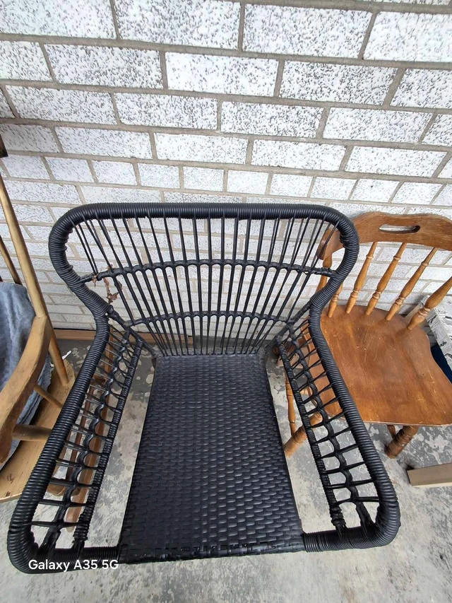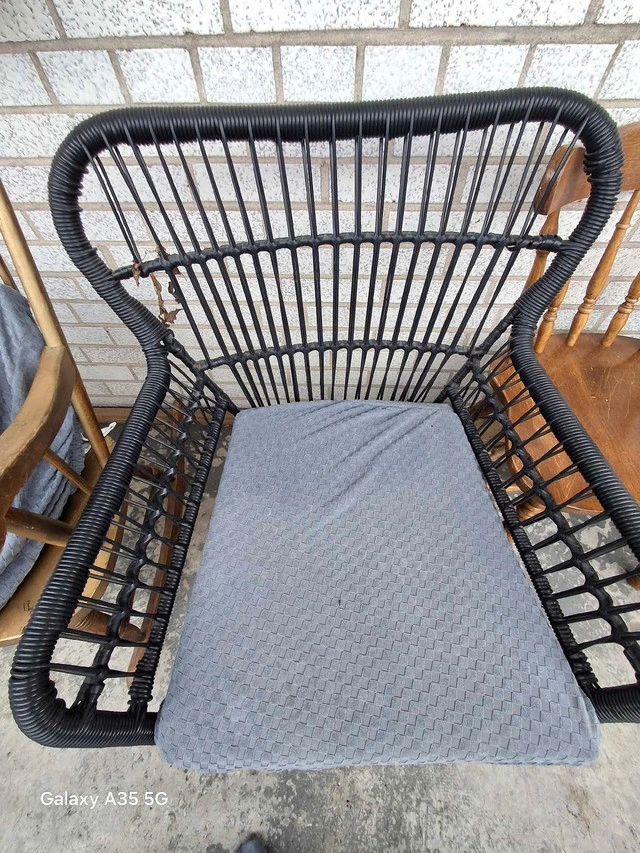Add a touch of modern elegance to your space with this stylish black wicker chair, perfect for both indoor and outdoor settings! This chair features a sleek design and comfortable seating, making it ideal for relaxing on your patio or adding a chic accent to your living room. While it's in good condition, it has been previously enjoyed, which adds to its unique character. Specifications: * Material: Wicker * Colour: Black * Suitable for: Indoor and Outdoor Use * Design: Modern This chair is ready to bring comfort and style to your home. Don't miss out on the chance to own this versatile piece! If you're reading this, then yes, it’s still available! I sometimes think my ads are so great, they sell the item before anyone even sees them. Alas, that’s just wishful thinking! You can text me for the location The price may go down if you text me