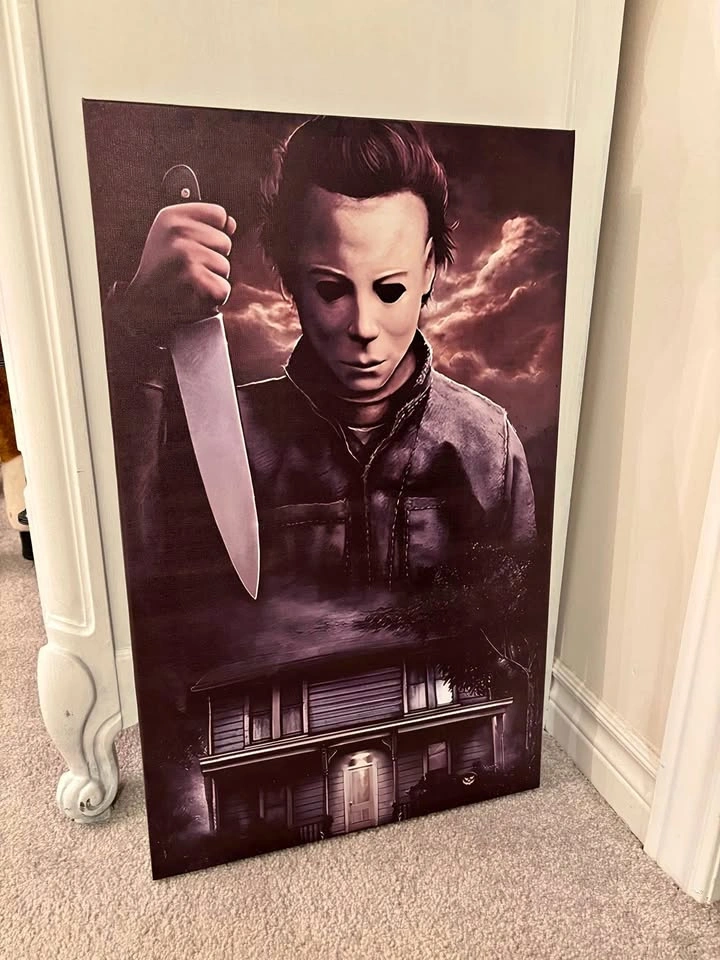 Michael Myers Halloween Print on canvas. Framed (by me) onto a 25.5”X15.7”X1.5” wooden frame. This canvas has a subtle shimmer to it. Light weight and ready to hang with a sawtooth hanger attached. Pick up in North Bowmanville near Middle Rd and Northglen Blvd. Check out my other listings for more selection!!πŸ‘€