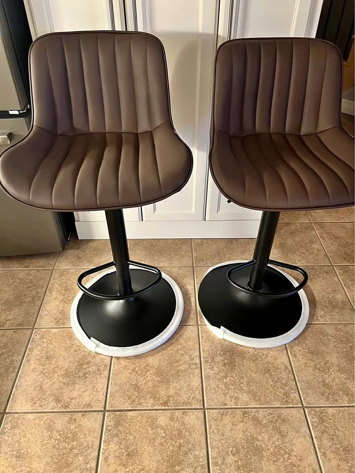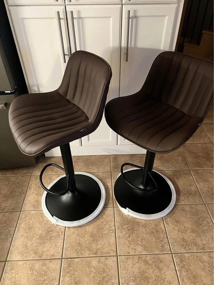 They swivel, you can adjust the height and they have a foot rest! These are brand new!