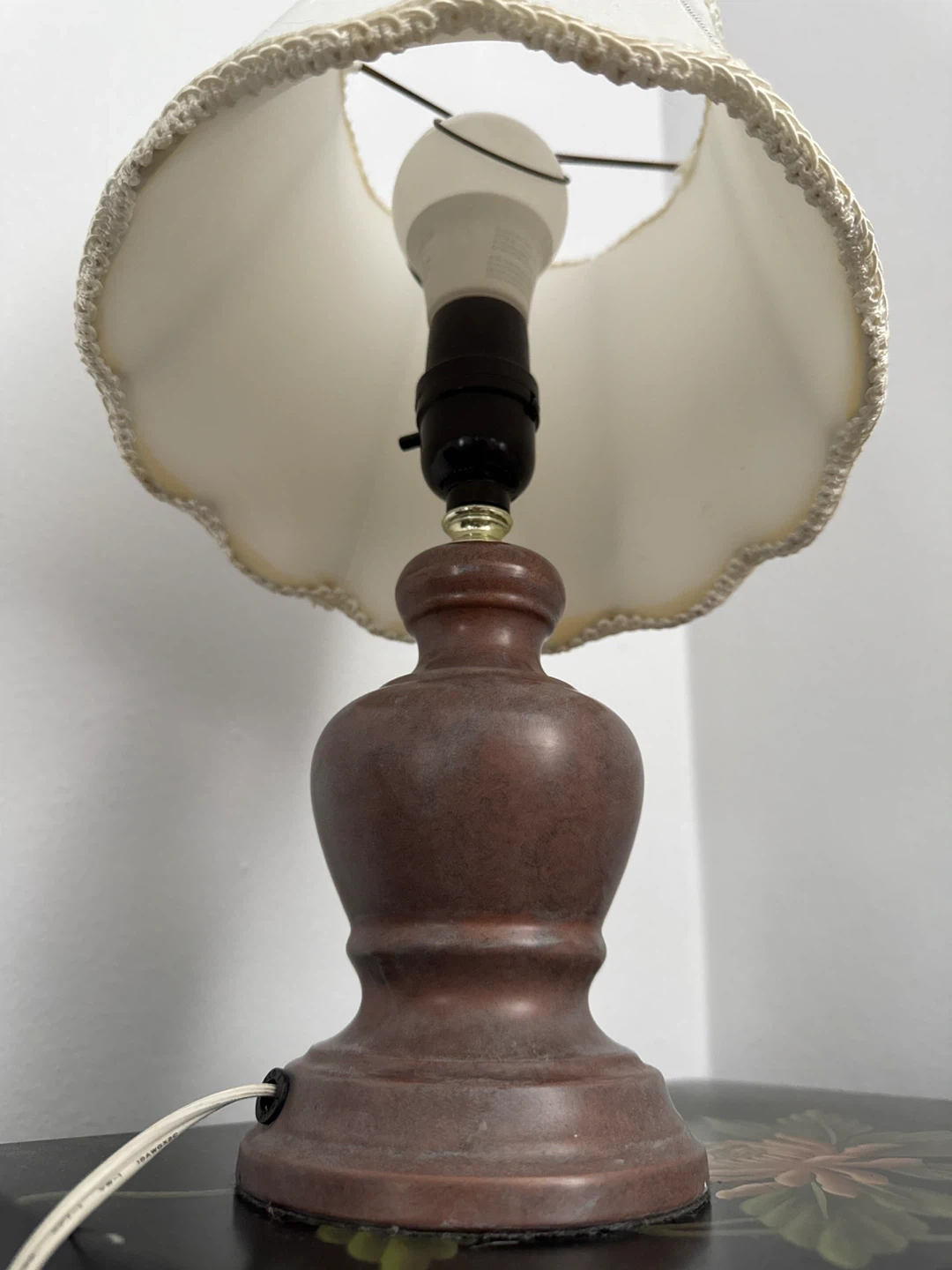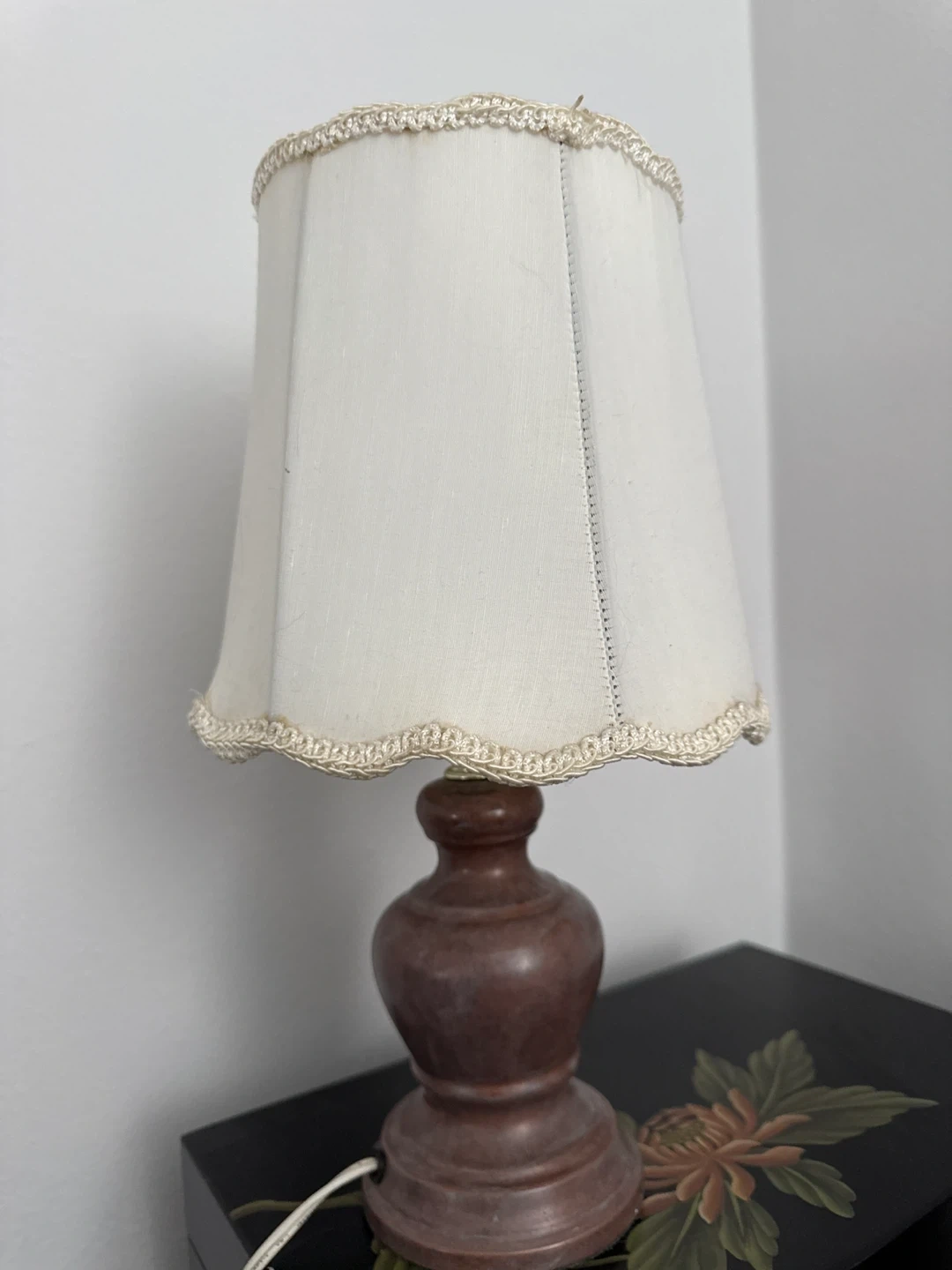 91Selling a cute table lamp with a brown base and a white shade. It's in good condition and would look great on a bedside table or desk. Perfect for adding a warm glow to any room!