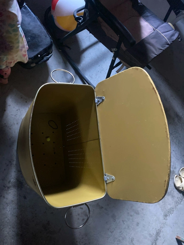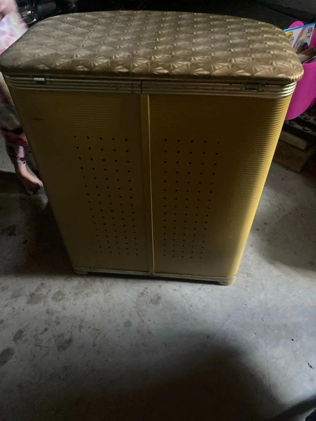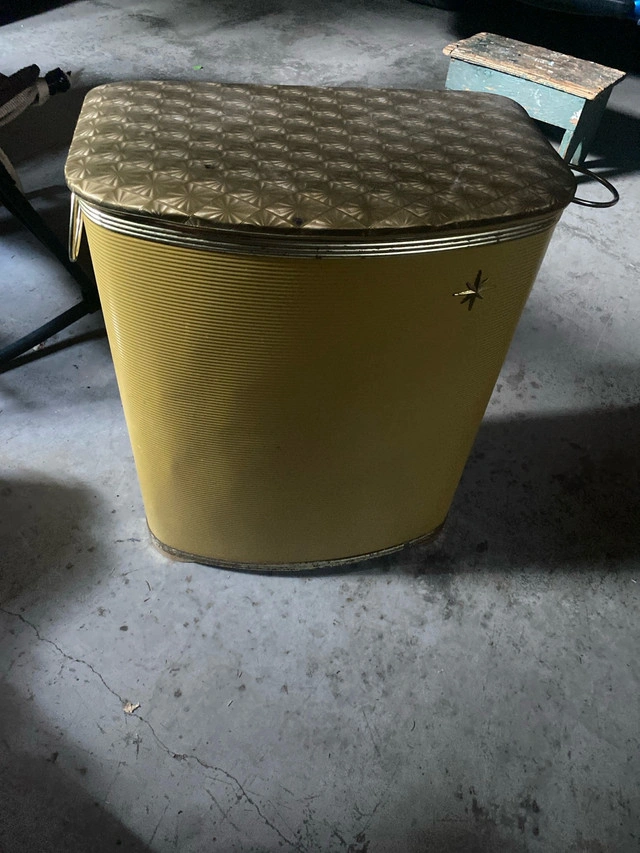 Have a beautiful vintage laundry hamper in excellent shape. 25 1/2” high 21” wide 13 1/2” deep 60$