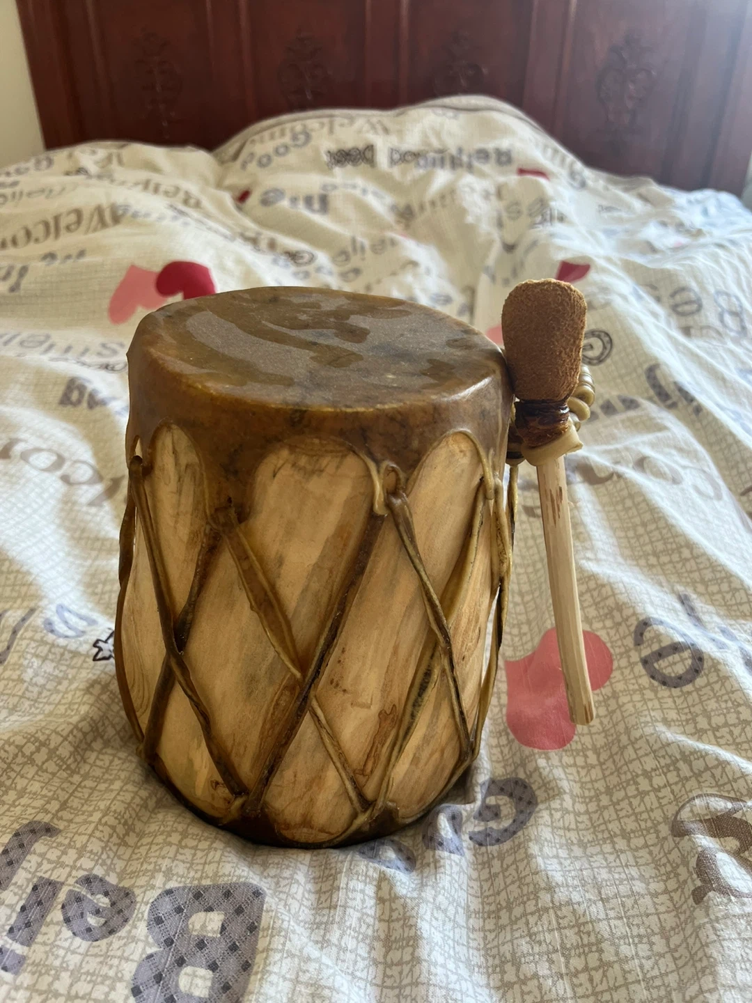 77Selling a hand drum made out of real cowhide. It's in excellent condition and ready for some music making! It's a unique piece that would be great for anyone interested in percussion instruments