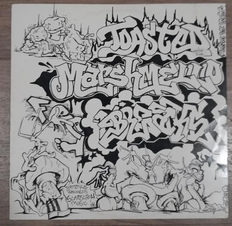 This is a vinyl record sleeve for Toasted Marshmallow / Fab 4. It features graffiti-style artwork. Labelled "Dirty Style Records Scarecrow Music 196."
