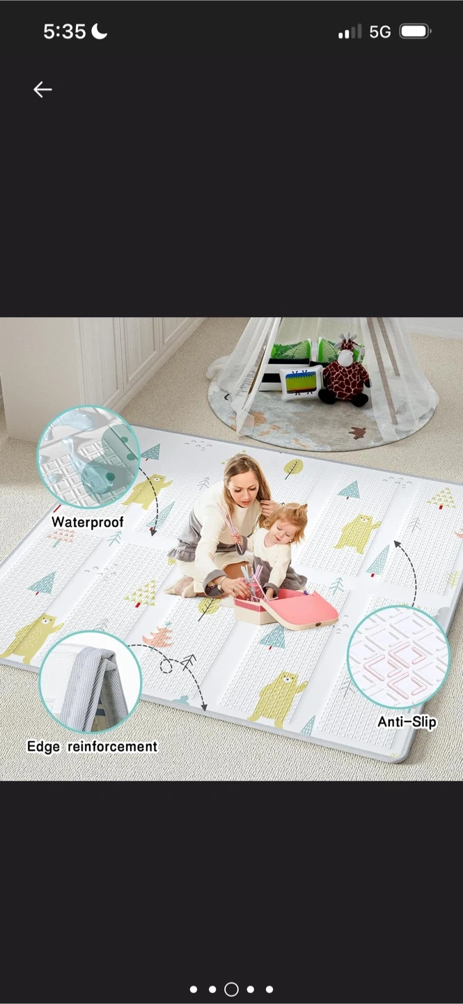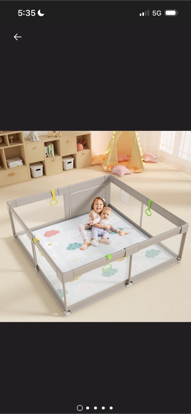 This is a baby playpen with a reversible mat. It's designed for children 3 months and up! The playpen features a 320D Oxford cloth and a burr-free thick steel pipe. The mat features two sides: Manor and Sailboat