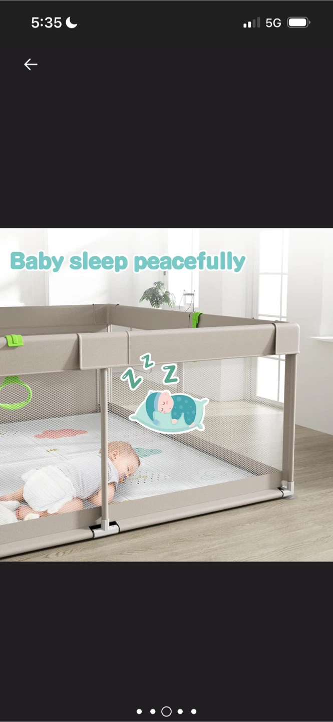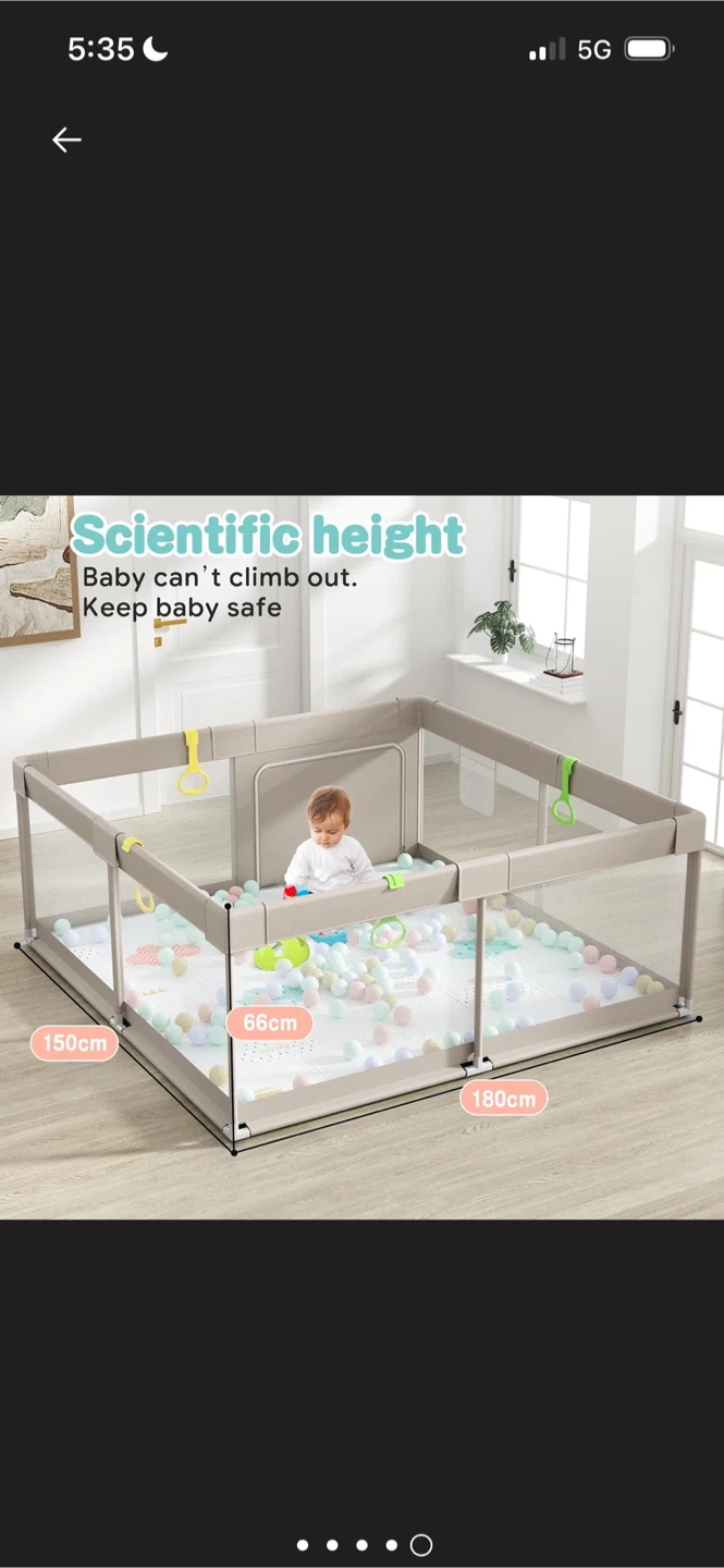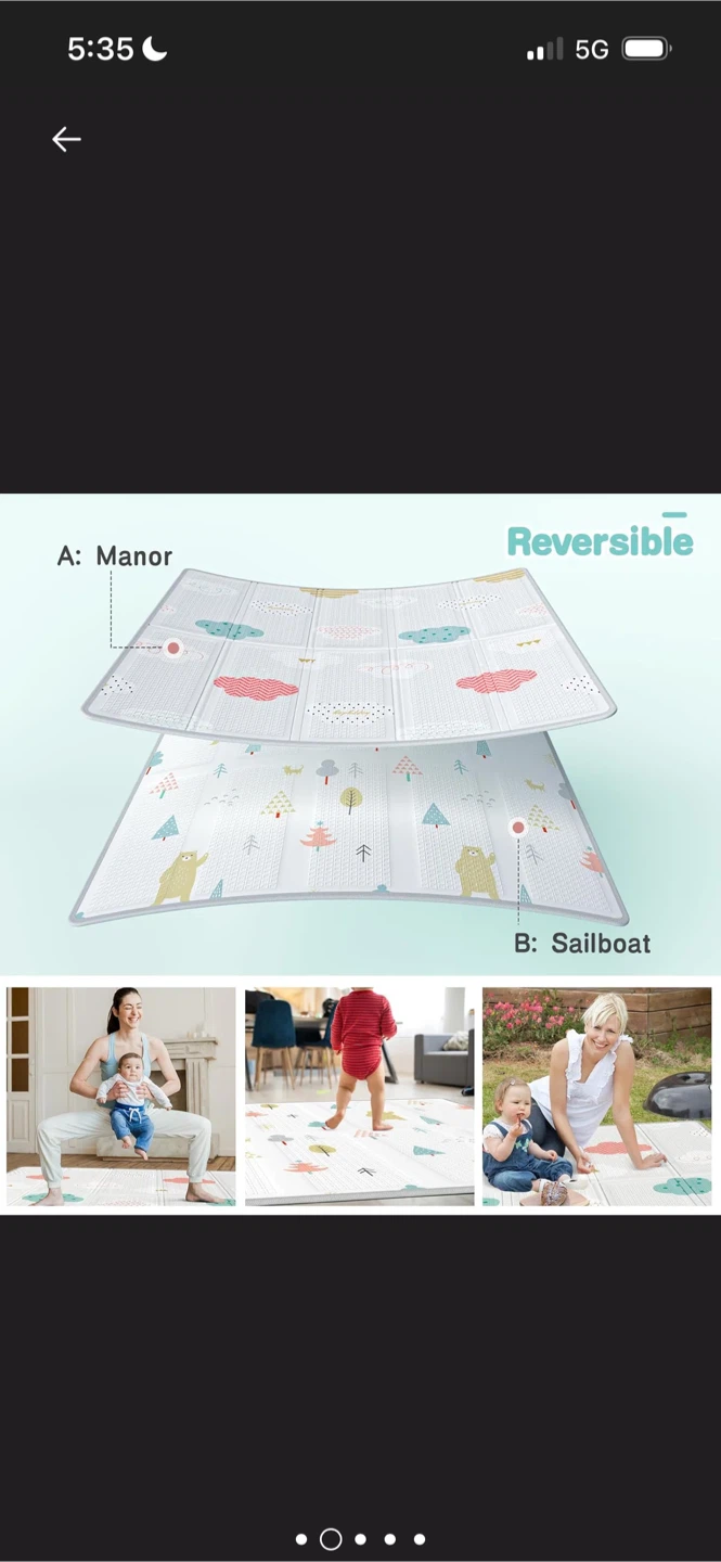 This is a baby playpen with a reversible mat. It's designed for children 3 months and up! The playpen features a 320D Oxford cloth and a burr-free thick steel pipe. The mat features two sides: Manor and Sailboat