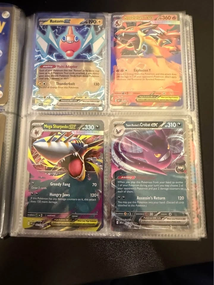 Lot of Pokemon cards that come with the binder. Lots of EX's, some full arts, and older holos/reverse holos. No gold mine cards, but other than EX's, all are in the $5-20 range. Will also throw in the Japanese Mega Diancie for market price (~$10). Down to trade for individual cards or smaller lots, or looking for $175 cash. Can send more pics or videos on request, but ideally I move all or most.