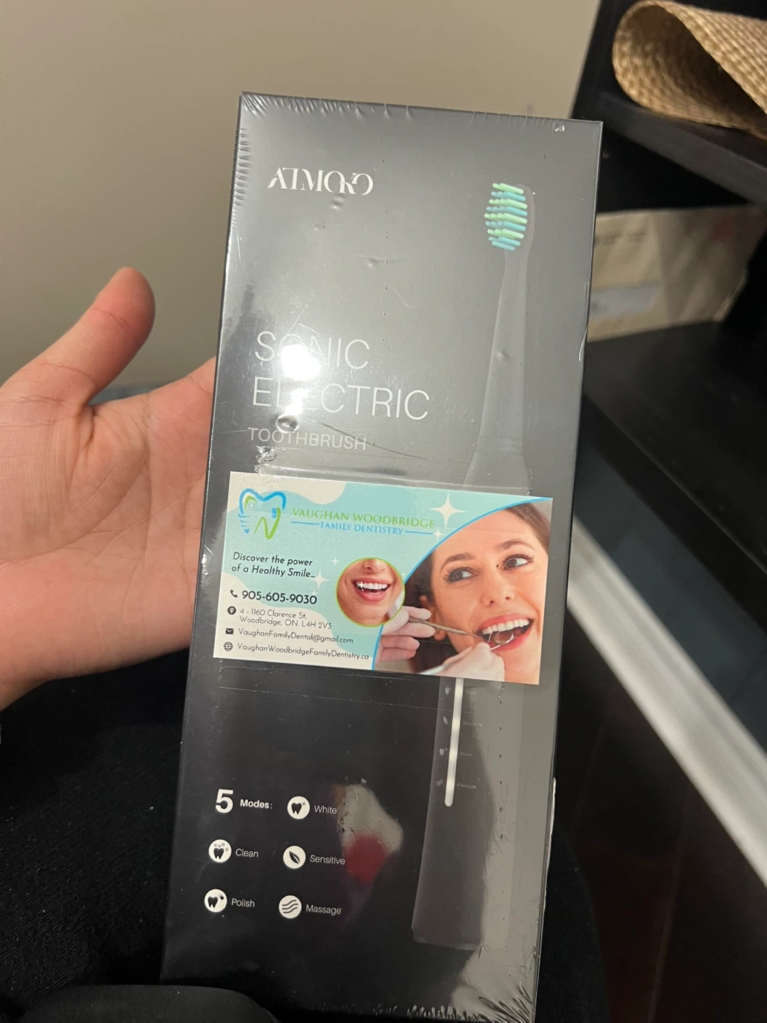 This AIMOO sonic electric toothbrush features 5 modes: Clean, Polish, White, Sensitive, and Massage. It offers USB charging and has a 2-minute smart timer. The toothbrush removes up to 10x more plaque versus a manual toothbrush. It's great for achieving a cleaner smile!