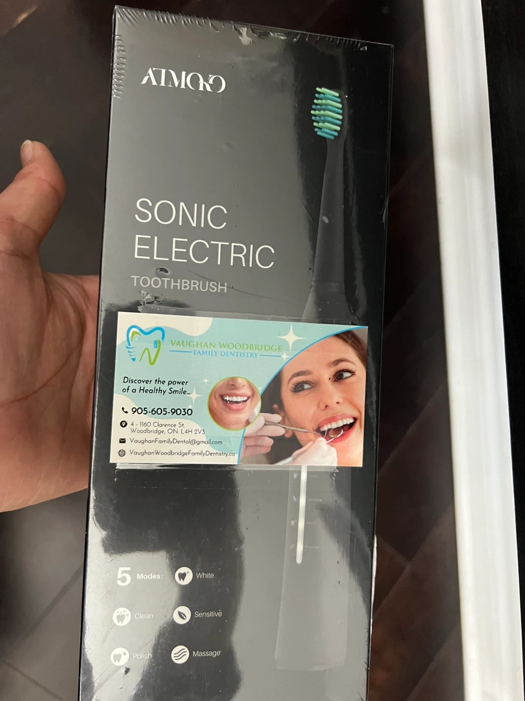 This AIMOO sonic electric toothbrush features 5 modes: Clean, Polish, White, Sensitive, and Massage. It offers USB charging and has a 2-minute smart timer. The toothbrush removes up to 10x more plaque versus a manual toothbrush. It's great for achieving a cleaner smile!