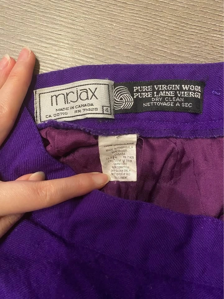 Vibrant Purple 100% wool skirt.