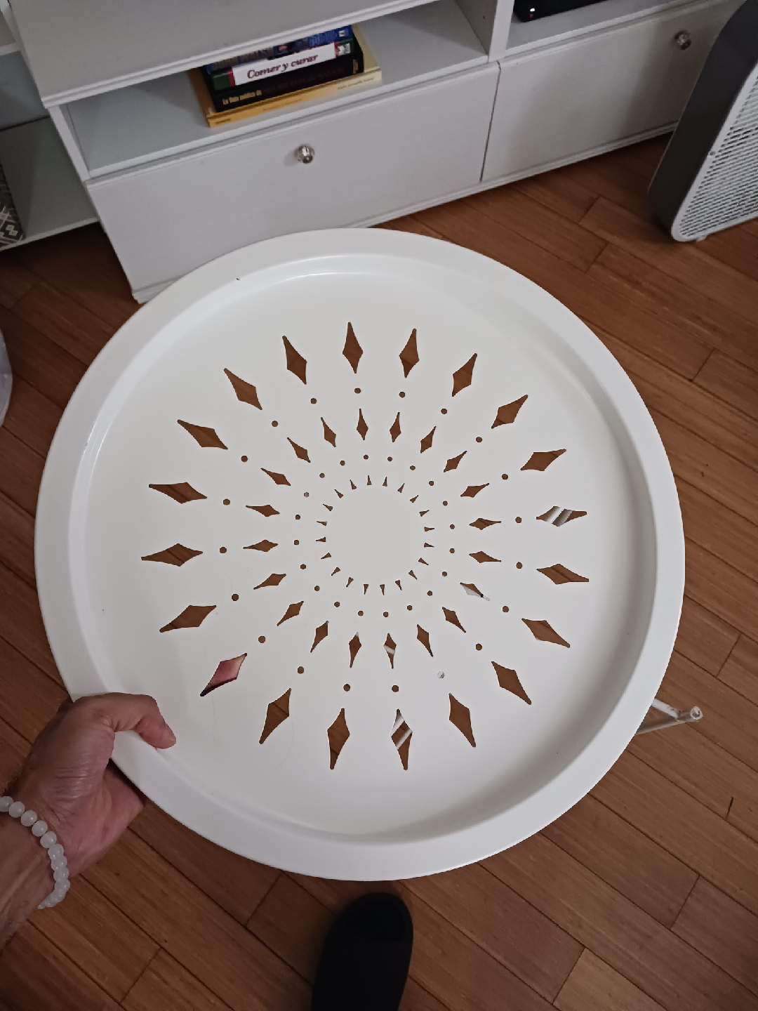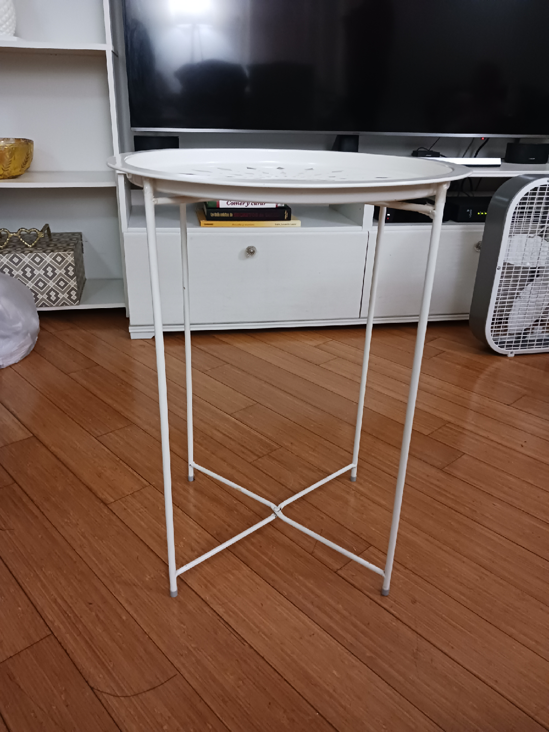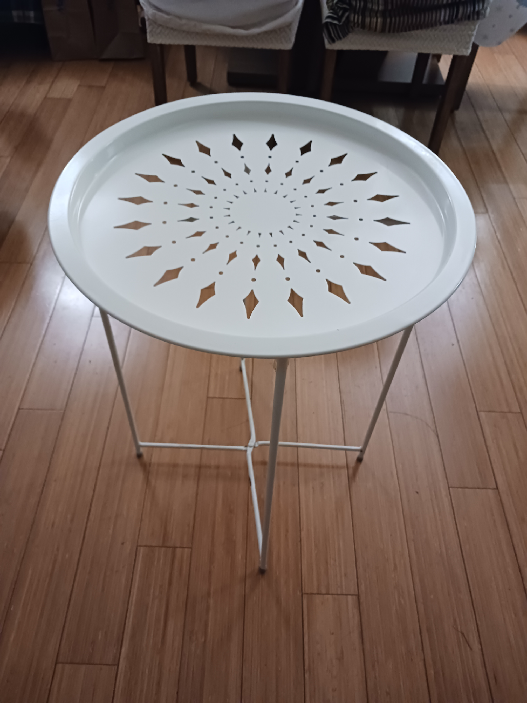 Bring style and function to any room with this sleek white round metal side table. Featuring a decorative cutout sunburst design on the tray top, it’s both eye-catching and versatile. lightweight frame makes it easy to move around, perfect for use as a: