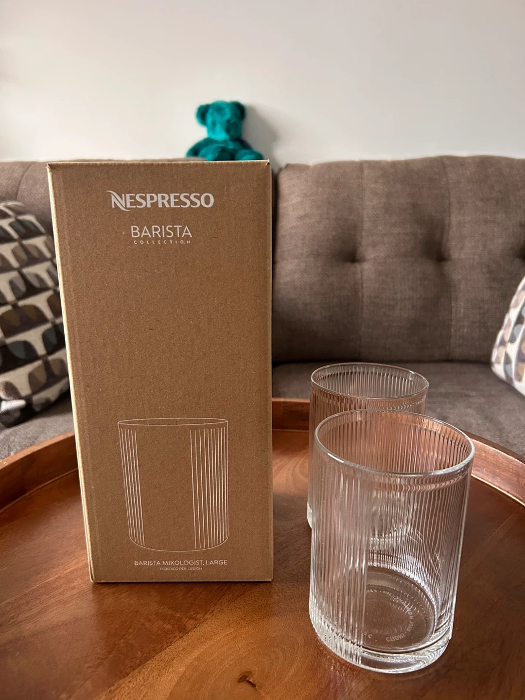 Selling a set of two Nespresso Barista Collection Mixologist glasses in the large size. They're New in the original box! Perfect for enjoying your favourite Nespresso coffee creations at home