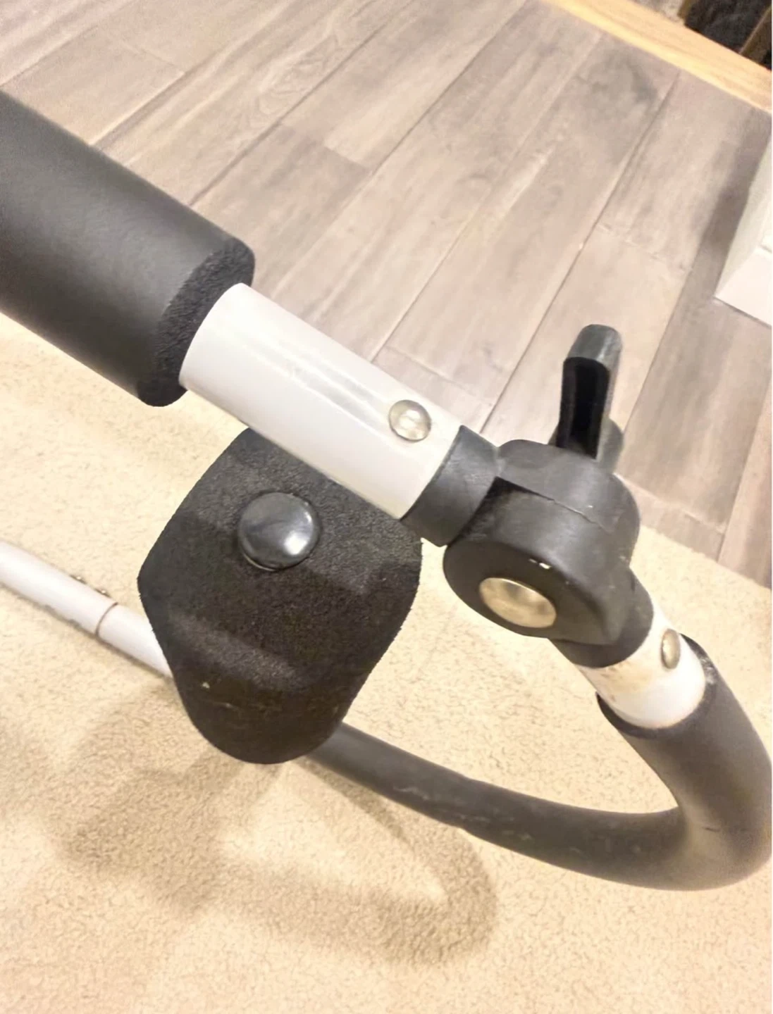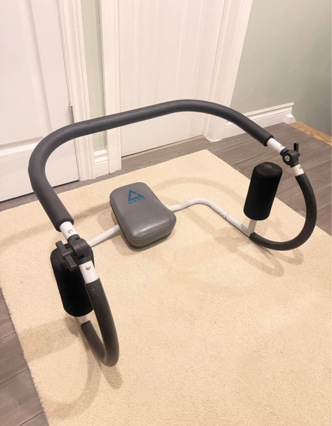 This is a KEYS abdominal exercise roller. It's made with a sturdy metal frame and padded grips for comfort. Foam padding protects your knees and hands during workouts.