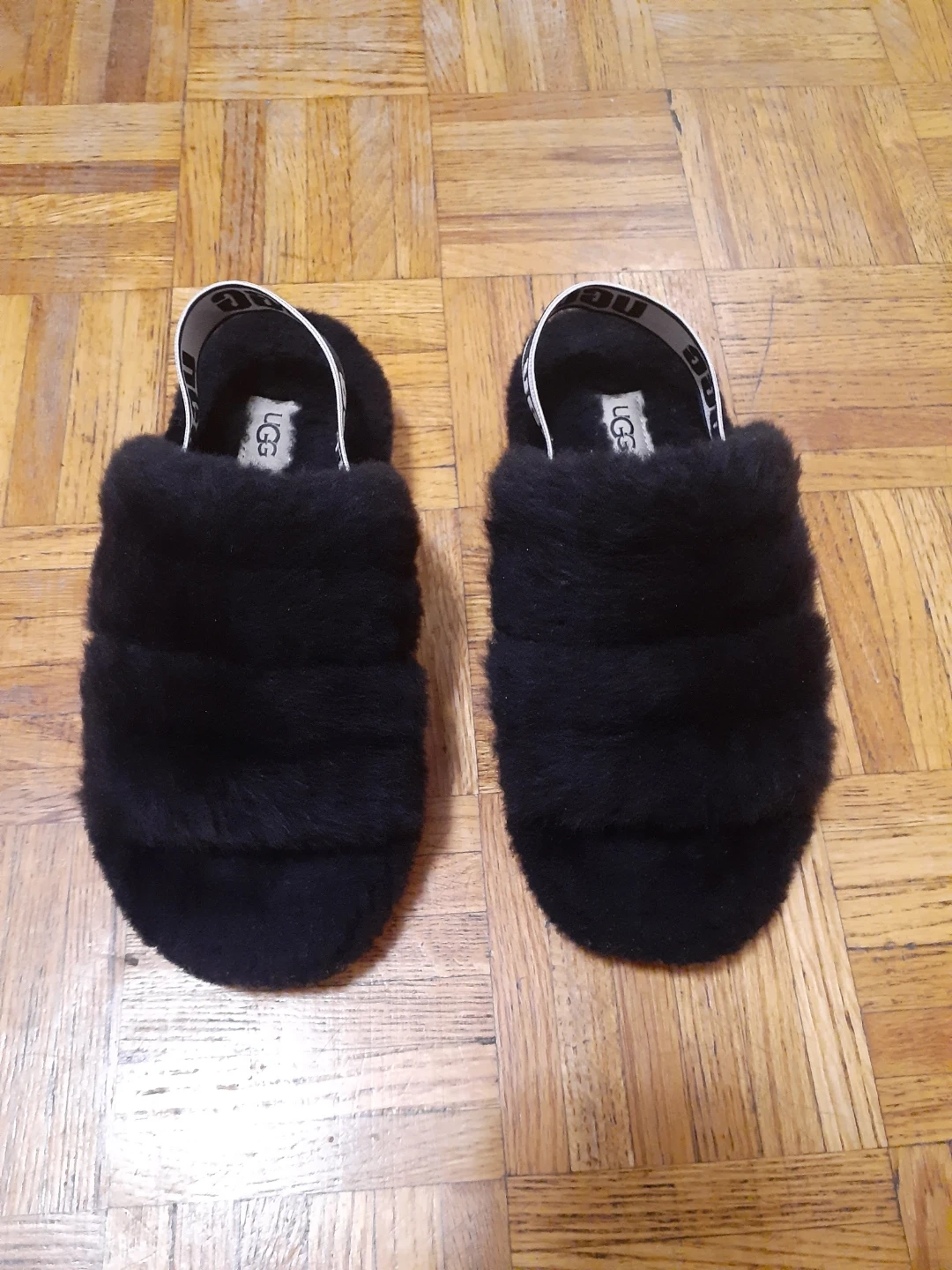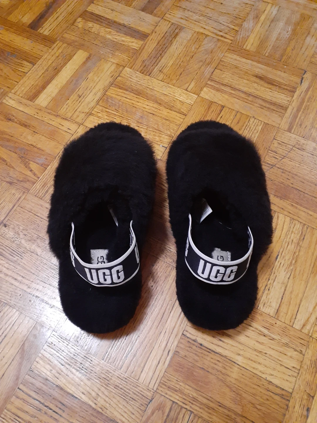 🥕Cozy black UGG slippers with fluffy faux fur. Features a comfortable elastic UGG band SIZE 5. 🥕