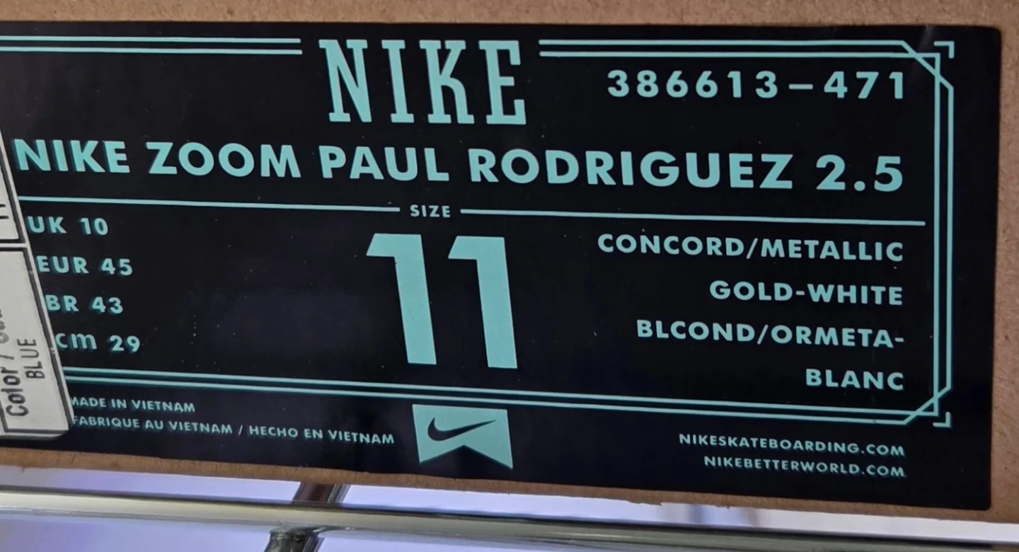 2012 NIKE ZOOM AIR PAUL RODRIGUEZ 2.5 Rare Blue Suede/Gold 386613-471 Size 11 shoes