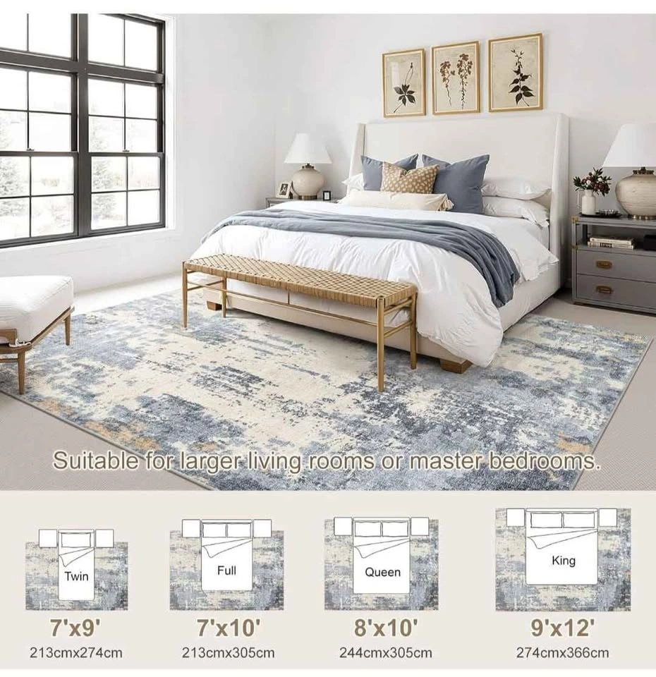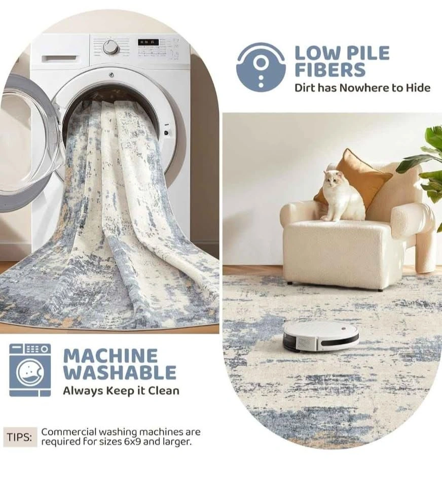 8x10 Area Rug for Living Room - Washable, Neutral Modern Abstrac