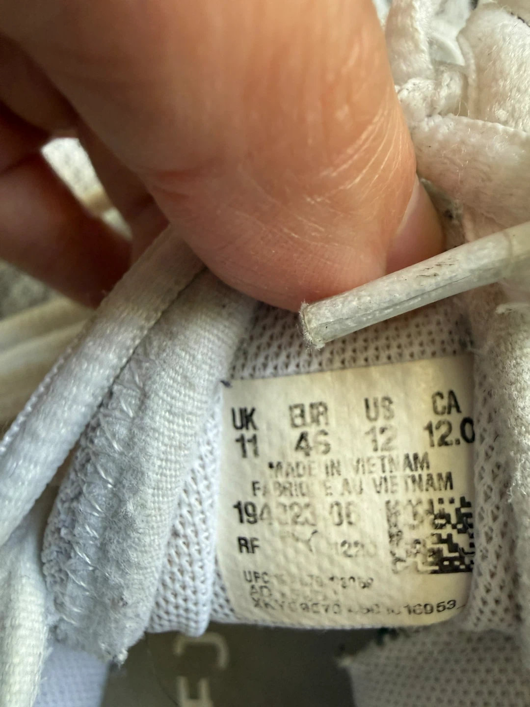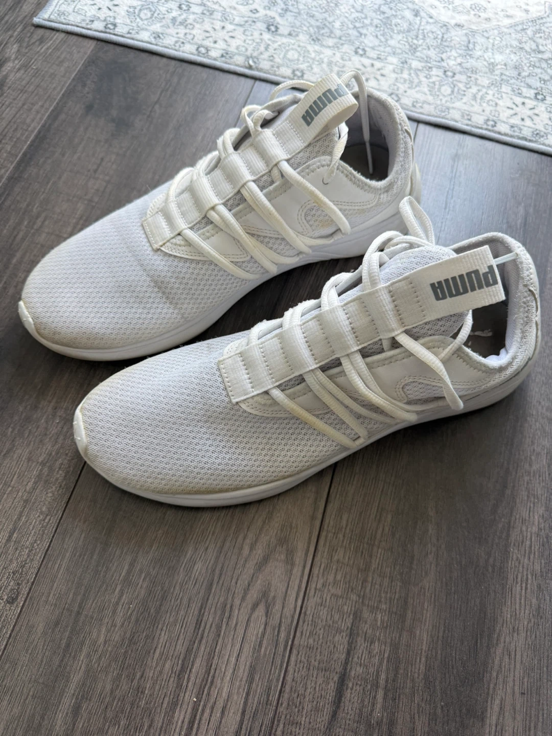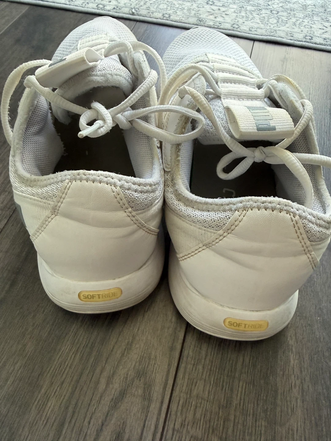 White Puma Softride running shoes. Features a breathable mesh upper and comfortable cushioning. Made in Vietnam. Size CA 12.0.