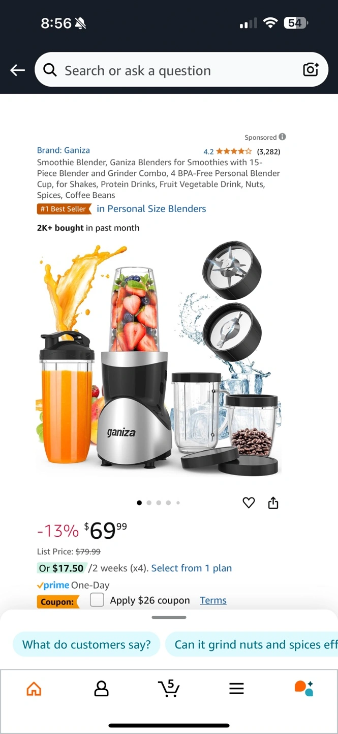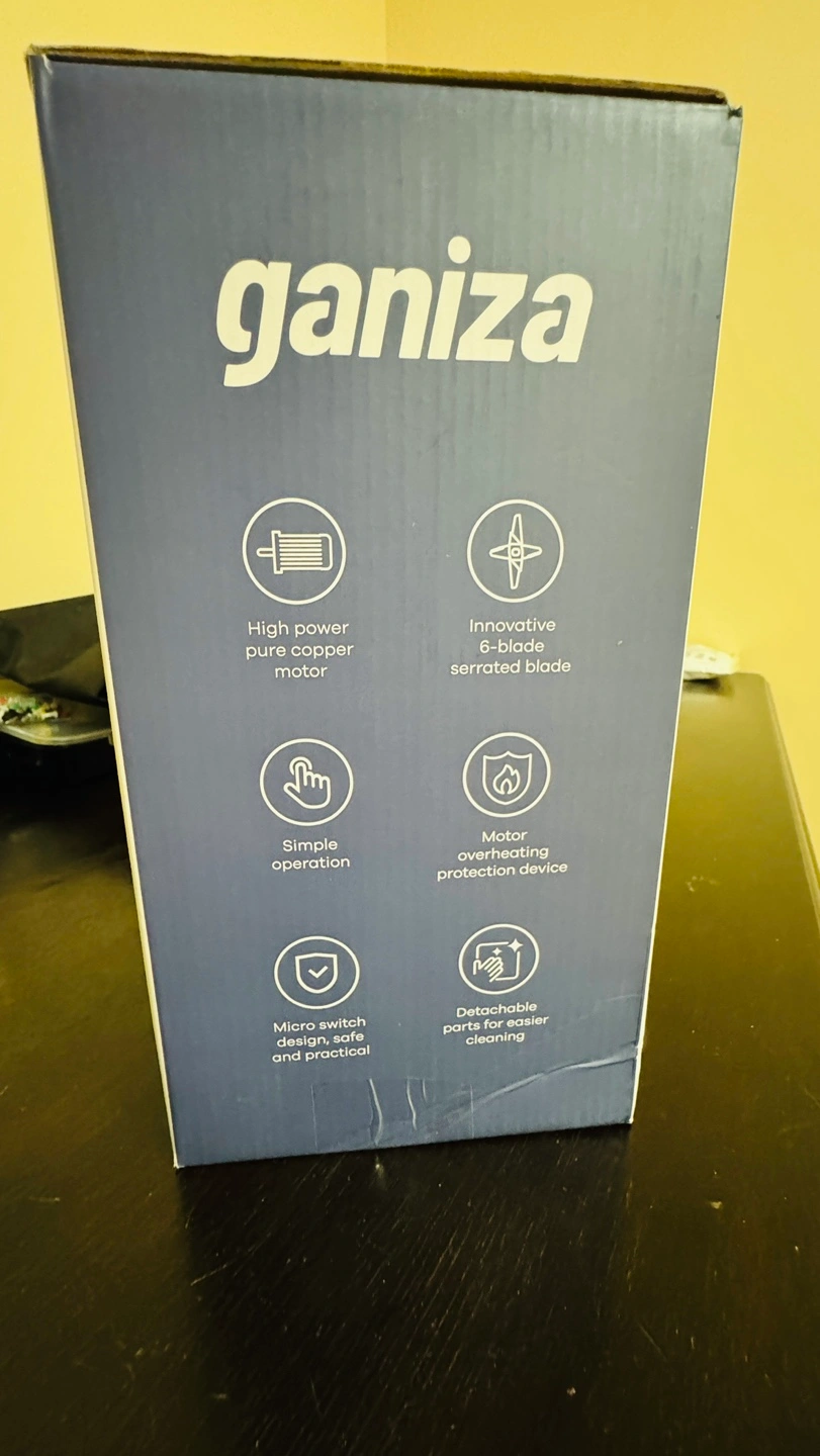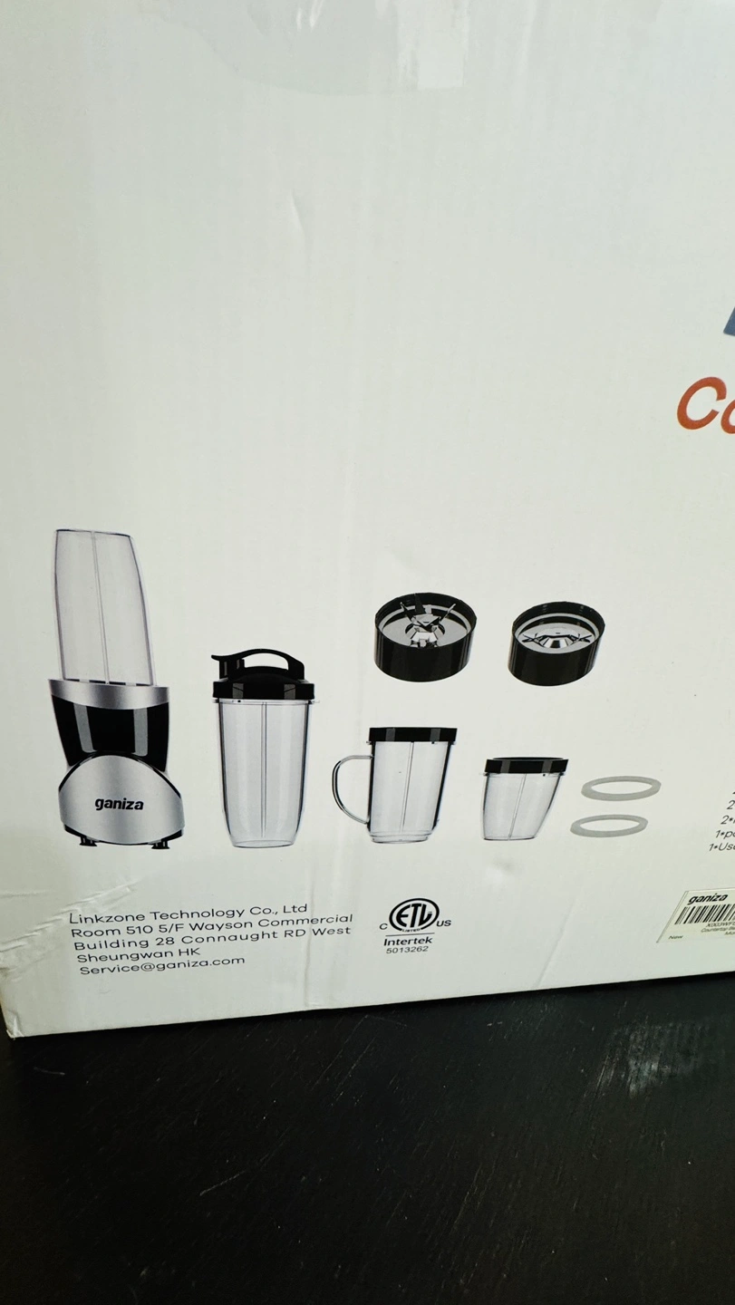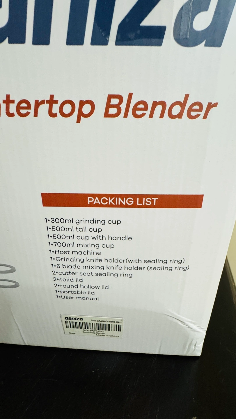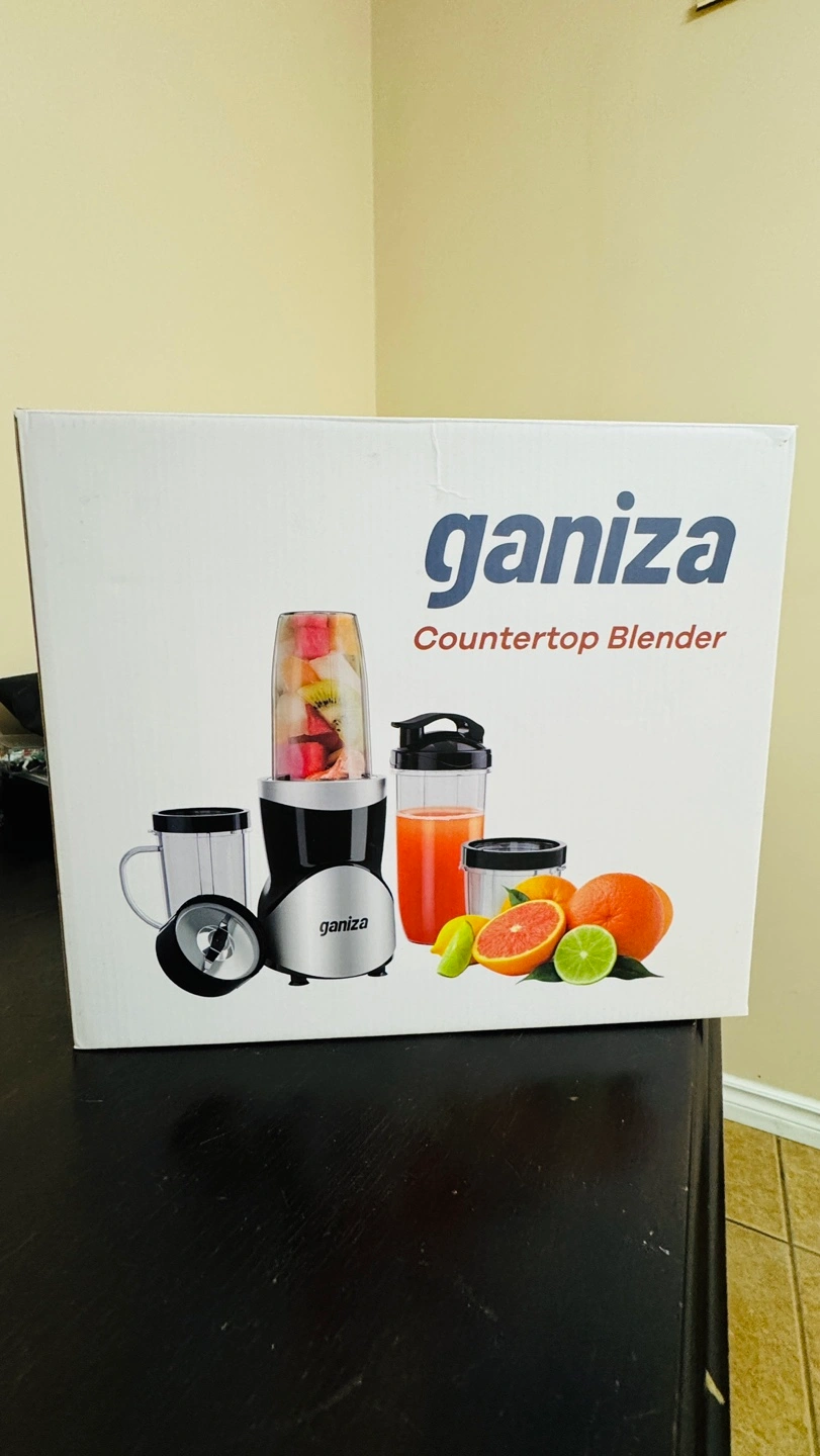 Ganiza countertop blender. Includes multiple cups and blades. High-power pure copper motor. Innovative serrated blades. Easy cleaning. I have used only one cup rest are unused.