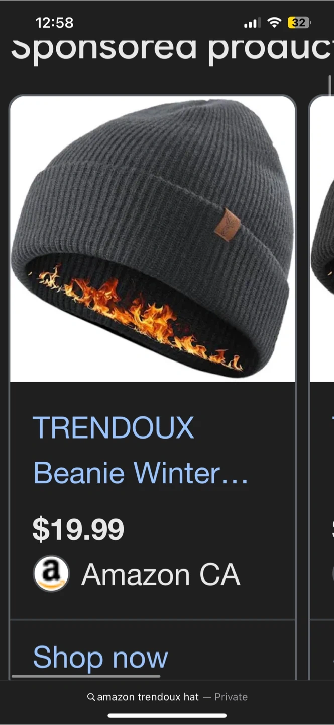 Selling a brand new TRENDOUX black beanie winter hat! It's still in its original packaging. This cozy beanie is perfect for keeping warm during the cold months. It was originally bought for $19.99