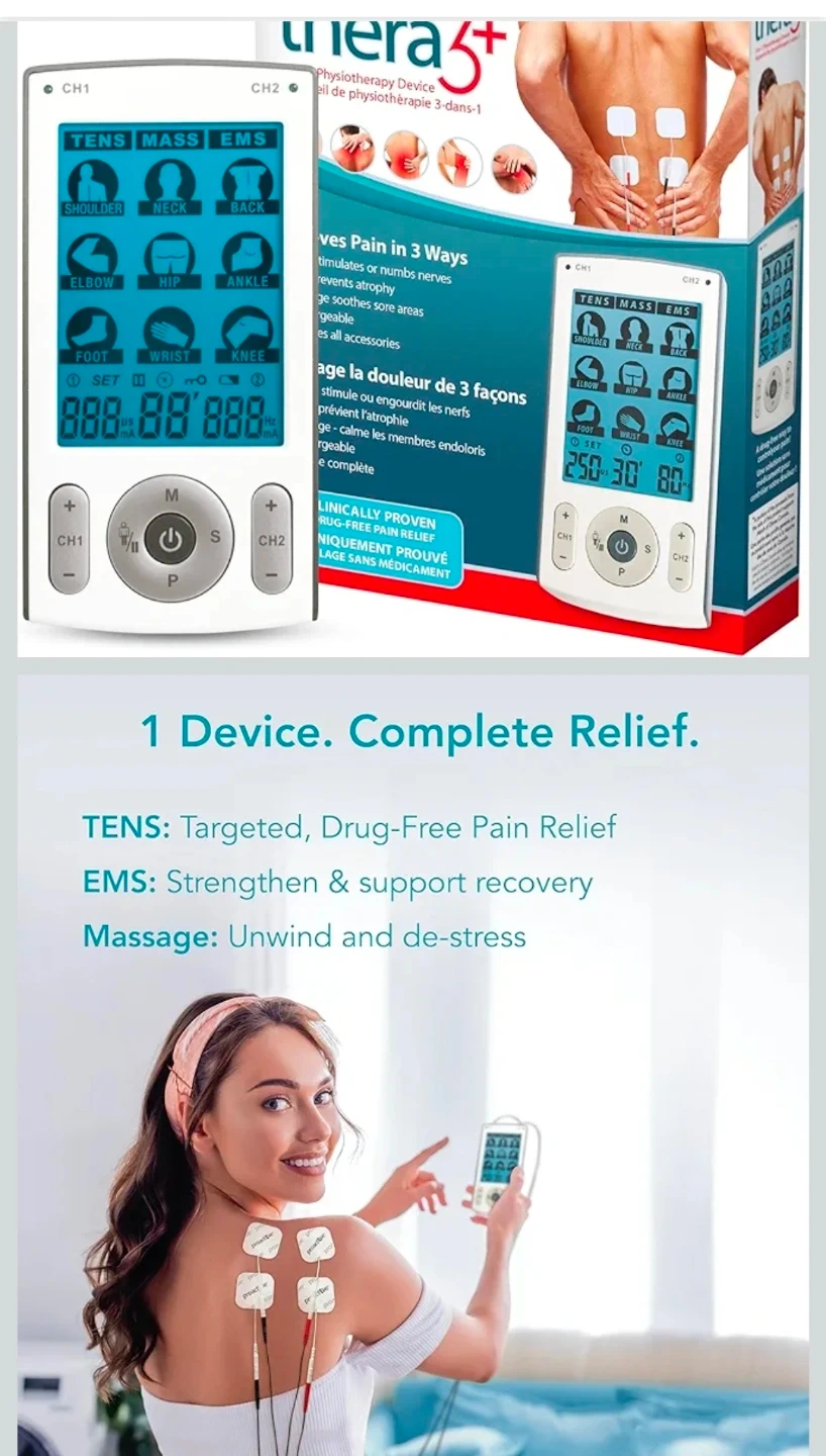 New 3-in-1 Therapy Modes: Offers TENS for effective pain relief