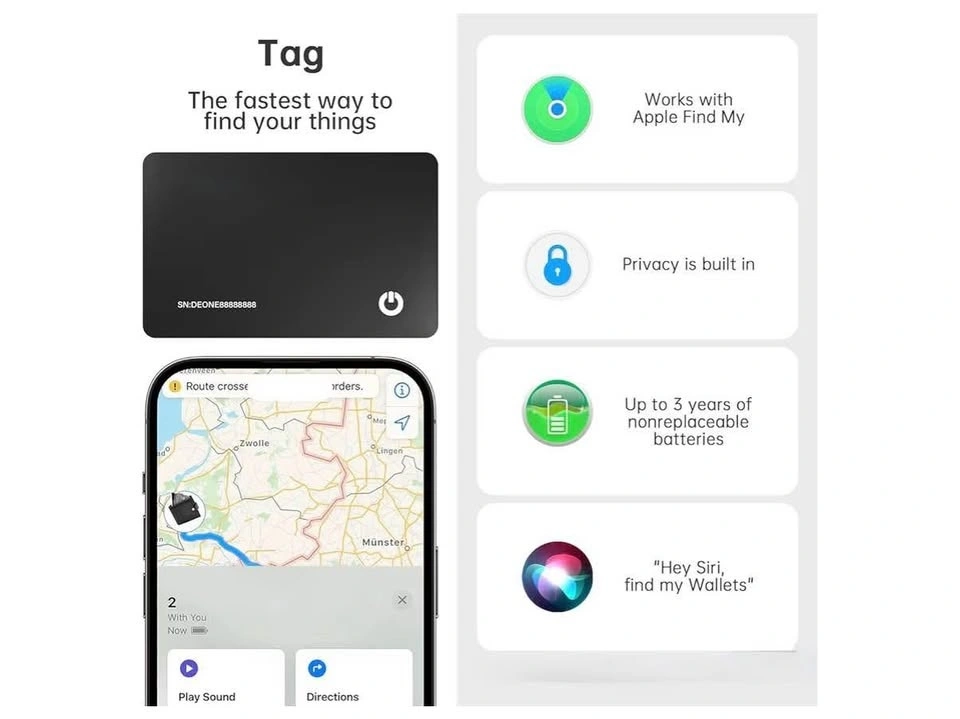 This Tag Smart Finder helps you keep track of your belongings by using the Apple Find My network! It's brand new and ready to help you find your things. It works seamlessly with the Apple Find My app on your iPhone, iPad, Mac, or Apple Watch. Plus, it has up to 3 years of non-replaceable batteries.