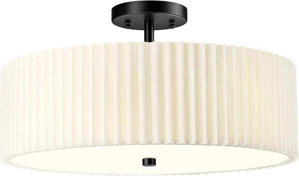 Audickic Semi Flush Mount Ceiling Lights, 4-Light 18" Matte Black Ceiling Light Fixture with White Pleated Fabric Shade, Drum Lamp for Nursery Hallway Bedroom Kitchen, AD-25036-4SF-BK. Item condition: Open box/new or appears new. Package condition: Original. Similar item, refer to actual images.