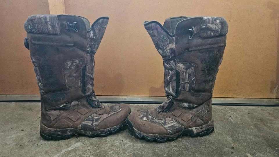 Warm Cabela's hunting boots. Men's size 13D. Features Gore-Tex waterproof, 800 gram Thinsulate Ultra insulation, and Vibram soles for good grip. BOA lacing system for easy on/off and a secure fit. Great for cold weather hunting or hiking. Boots are barely worn but are over 5 years old. Pick up and cash only.
